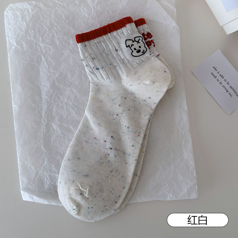 도트 원사 양말 여성 인 스타일 만화 자수 강아지 편지 AB 짧은 양말 빈 메쉬 통기성 캐주얼 양말스토어 가기