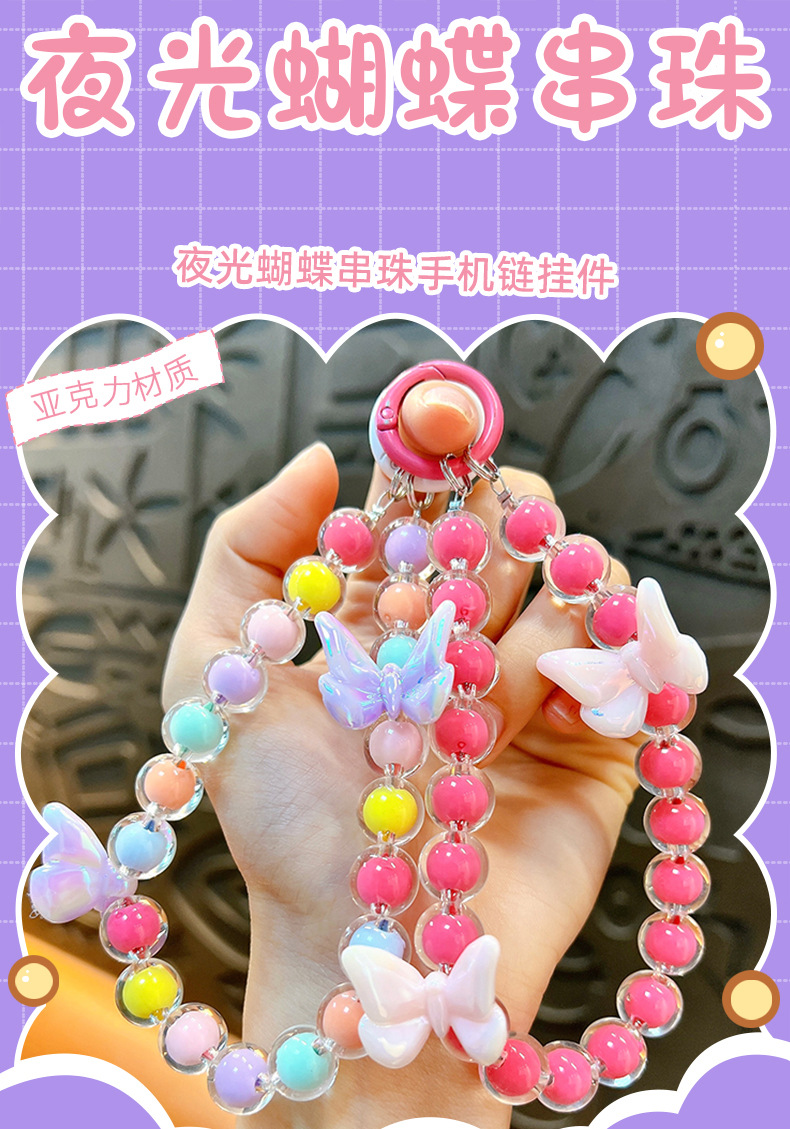 창조적 인 빛나는 나비 구슬 휴대 전화 체인 키 체인 키 체인 가방 액세서리 자동차 키 체인 선물 도매