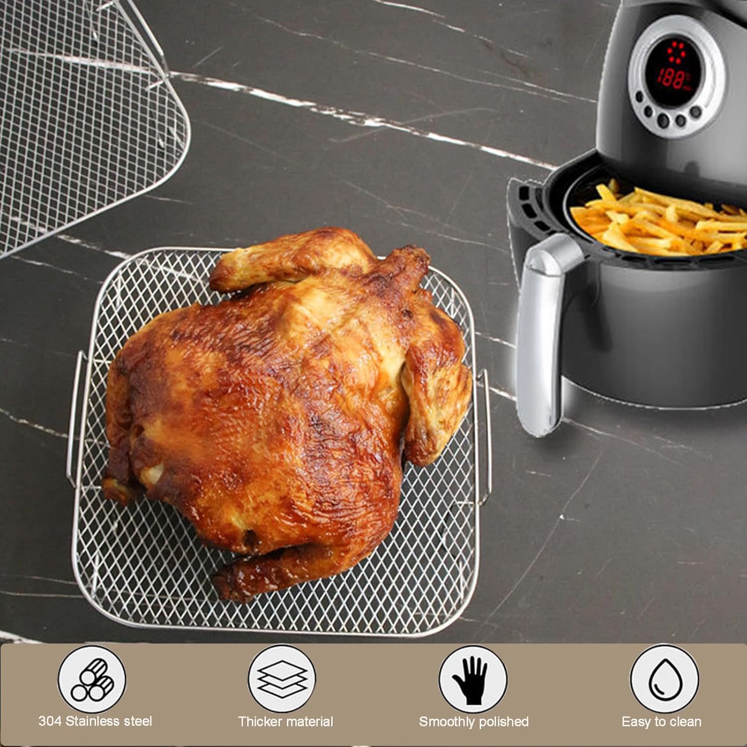 에어 프라이어 액세서리 스테인레스 스틸 스퀘어 에어 프라이어 랙 그릴 에어 프라이어 베이킹 스팀 랙 네트 Amazon