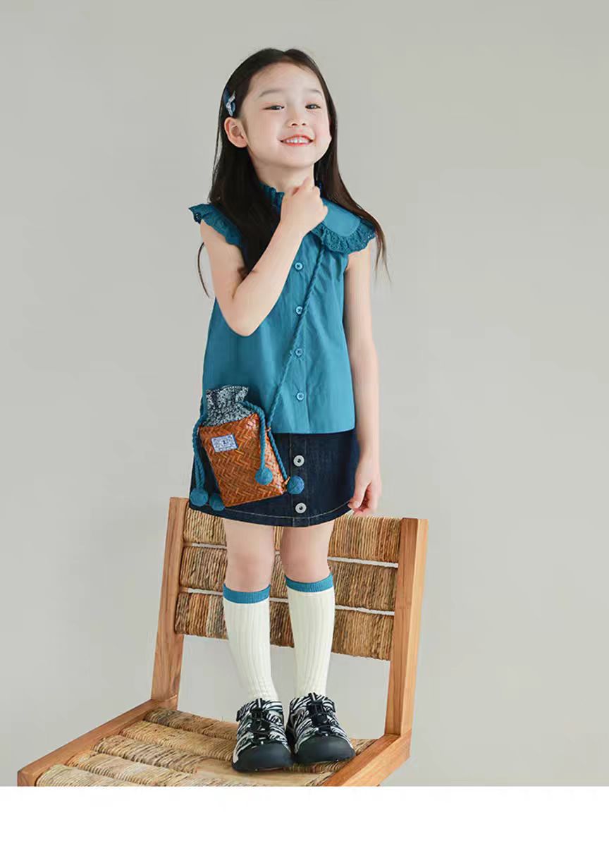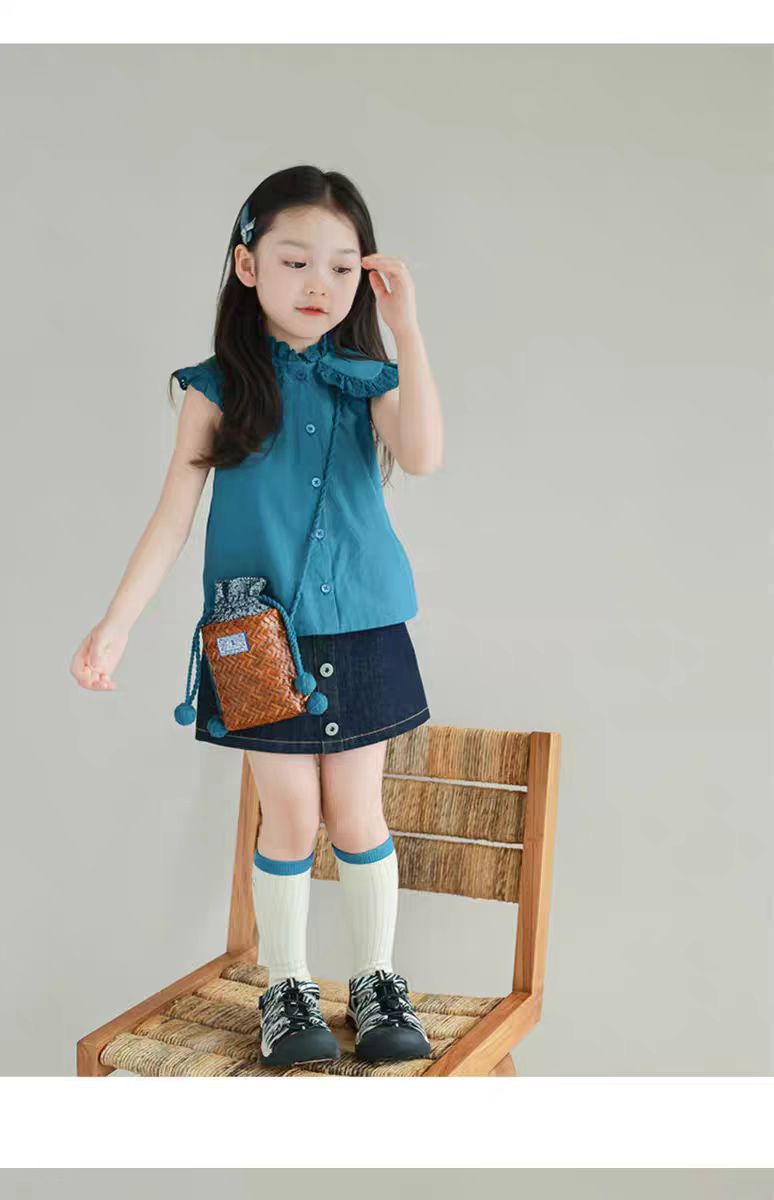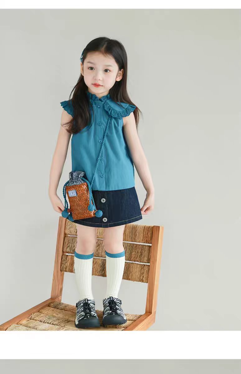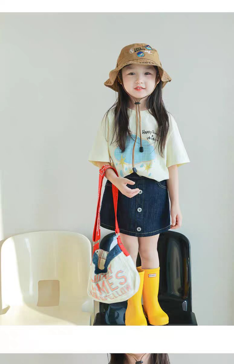소녀의 버클 데님 Culottes 2025 여름 새로운 어린이 짧은 치마 소녀의 작은 치마스토어 가기