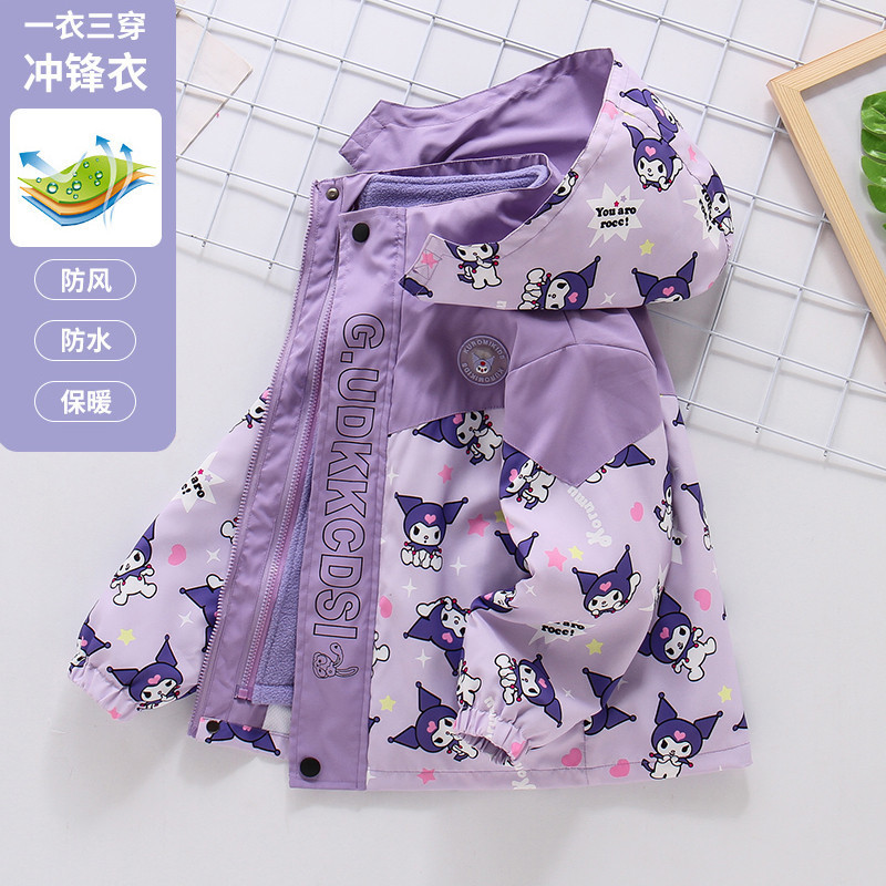 여아 봄, 가을 재킷 2025 새로운 중대형 아동용 벨벳 두꺼운 재킷 아동용 가을, 겨울 탈착식 윈드 브레이커스토어 가기