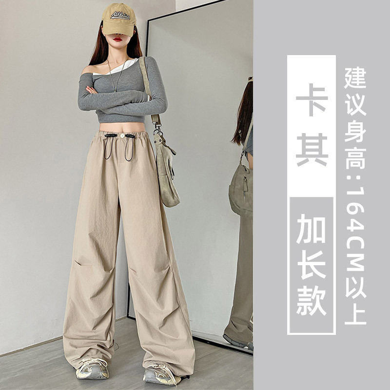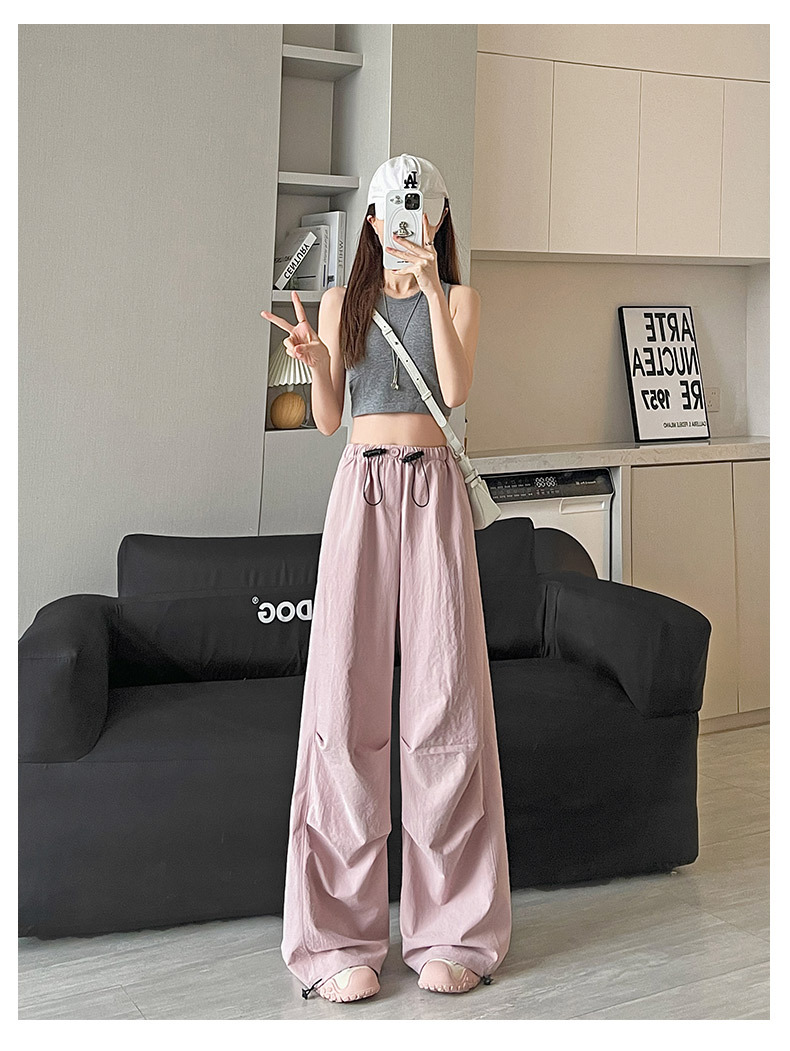 미국식 속건성 여성용 작업복 바지, 여름용 얇은 하이웨이스트 루즈핏 캐주얼 바지, 등산 스포츠 와이드 팬츠