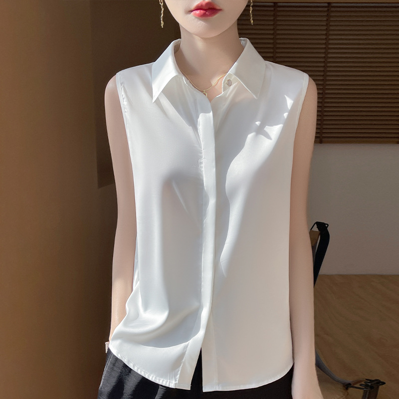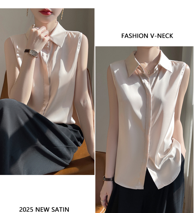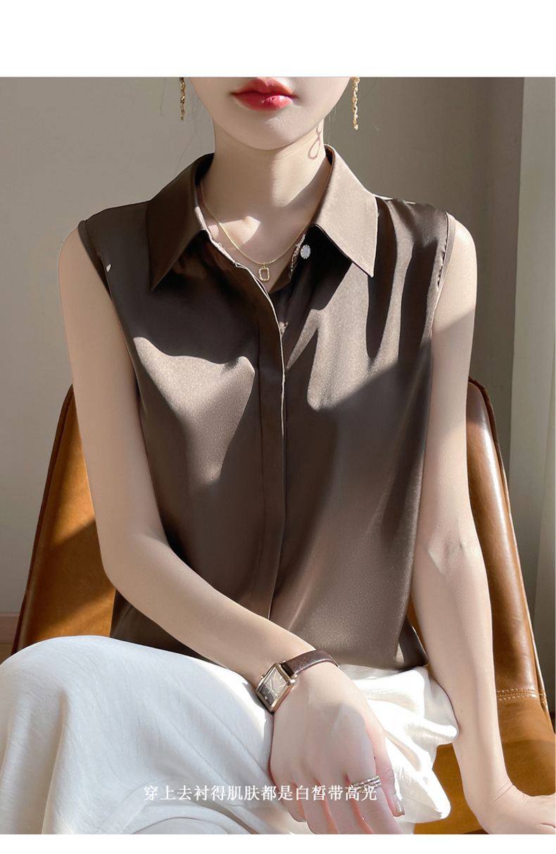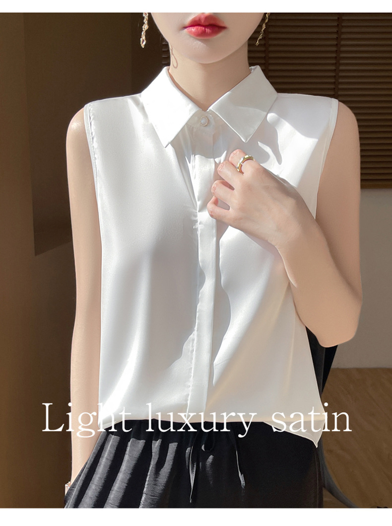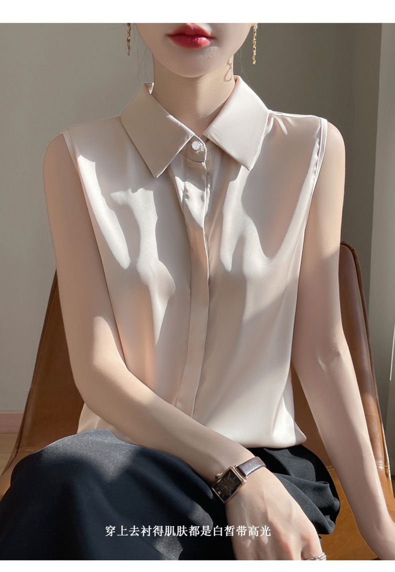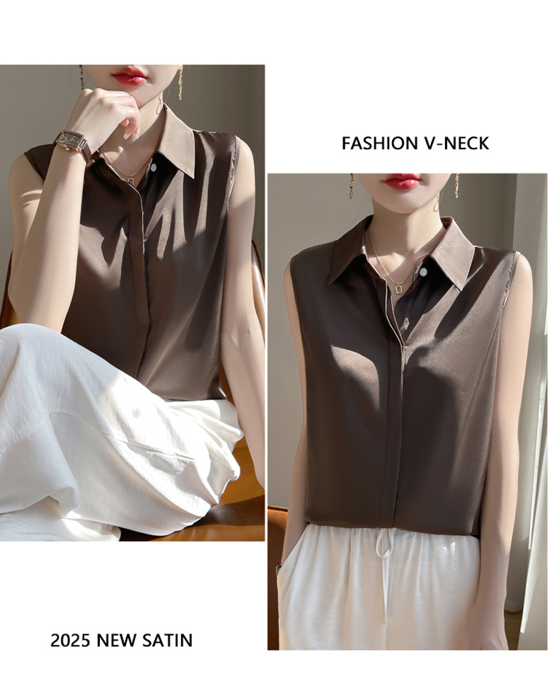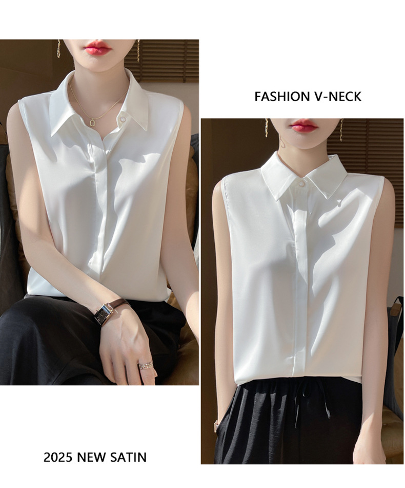 Acetic Acid Satin 옷깃 민소매 내부 조끼 여성 2025 년 여름 새베이스 아우터 셔츠