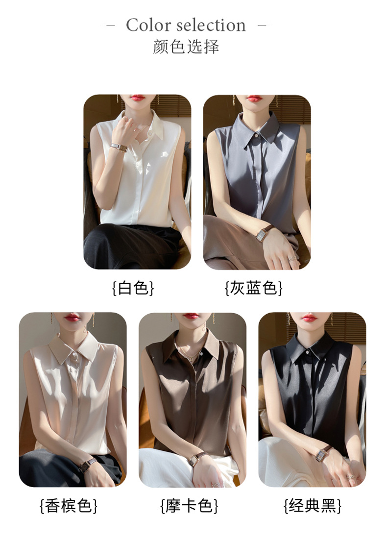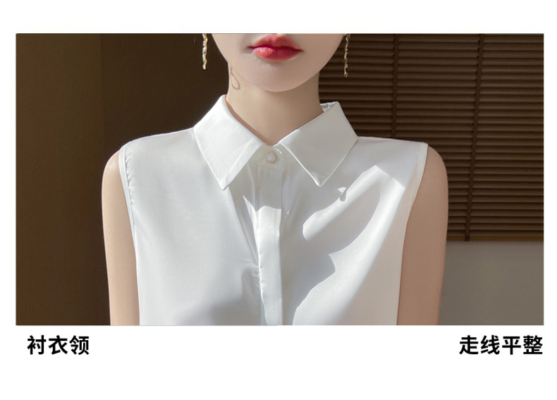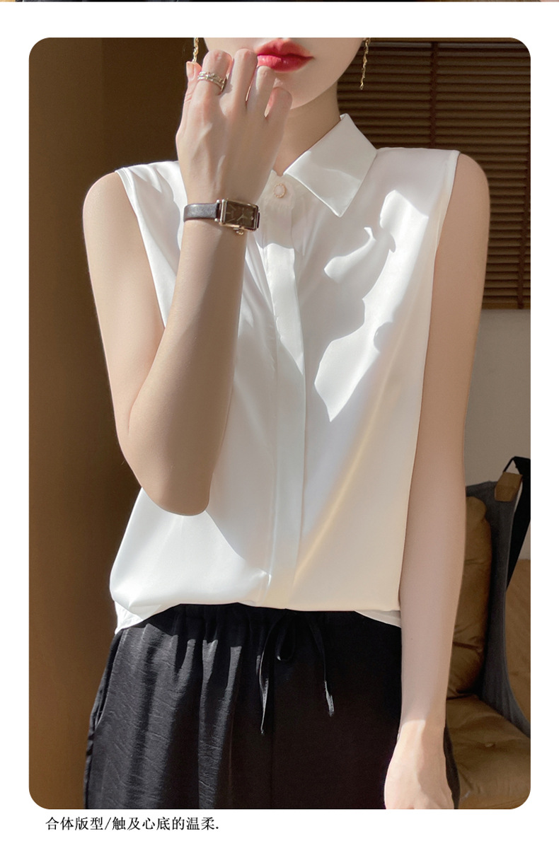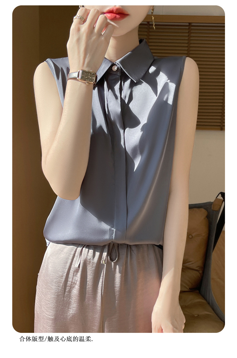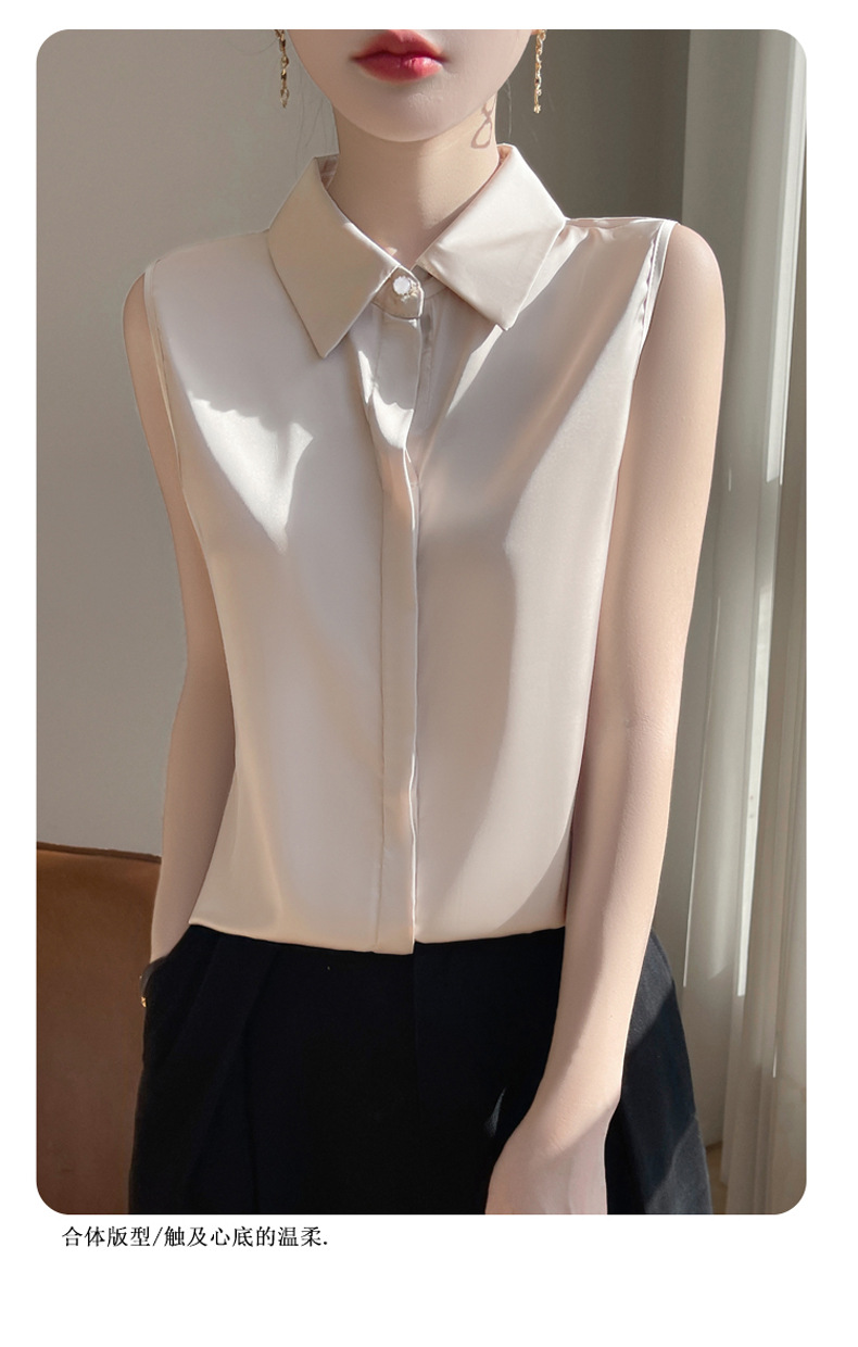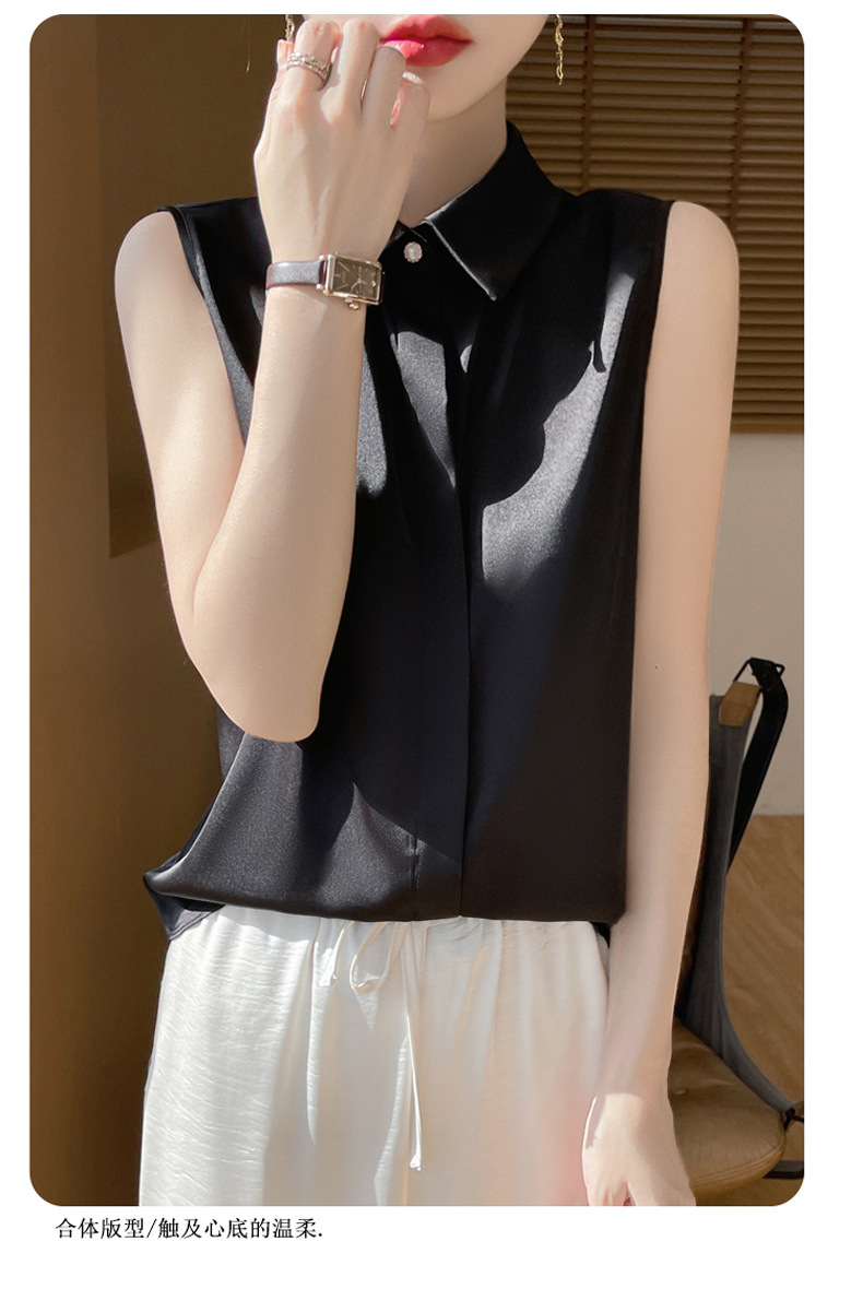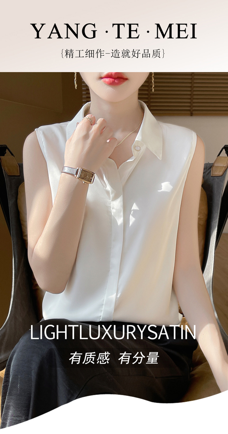 Acetic Acid Satin 옷깃 민소매 내부 조끼 여성 2025 년 여름 새베이스 아우터 셔츠