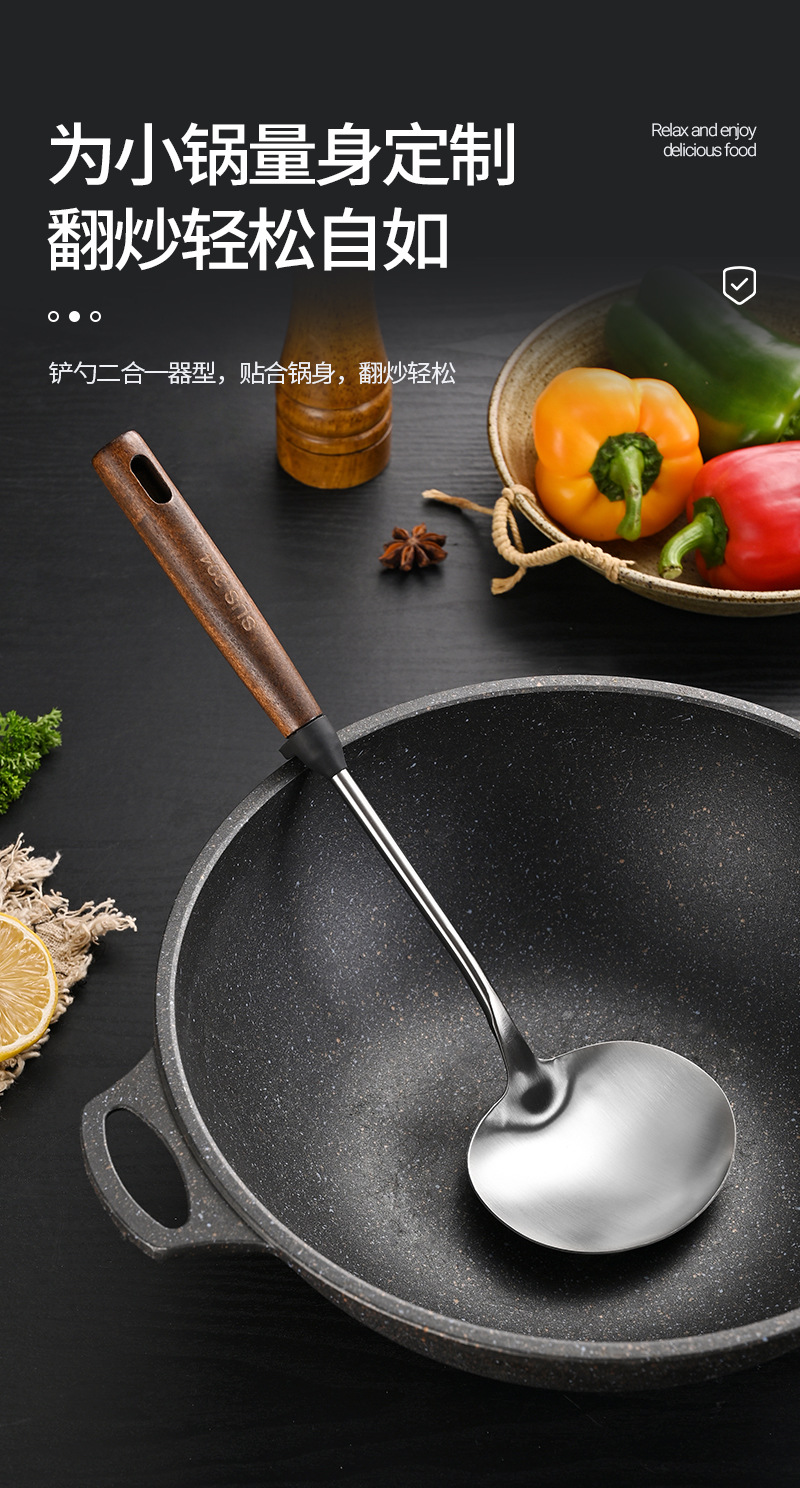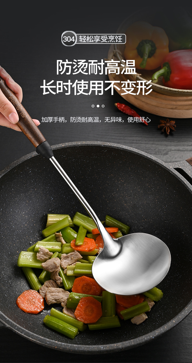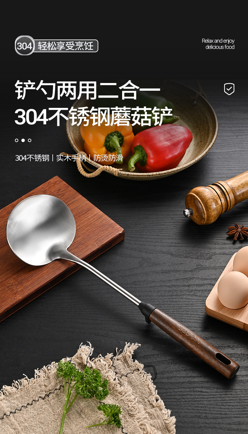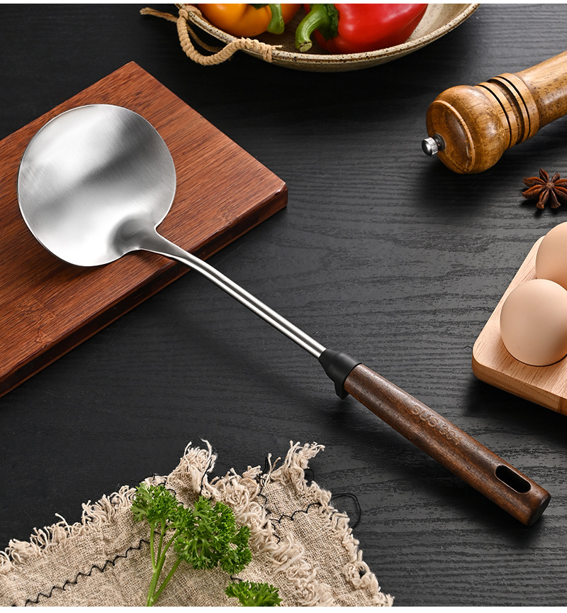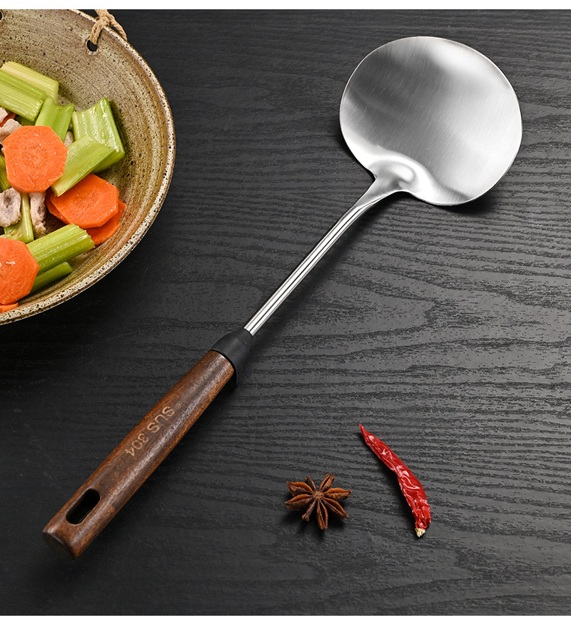 단단한 나무 요리 주걱을 요리하는 스테인리스 스틸 주방 크로스 보더 두꺼운 버섯 미끄럼 방지 304 냄비 주걱 스테인레스 스틸
