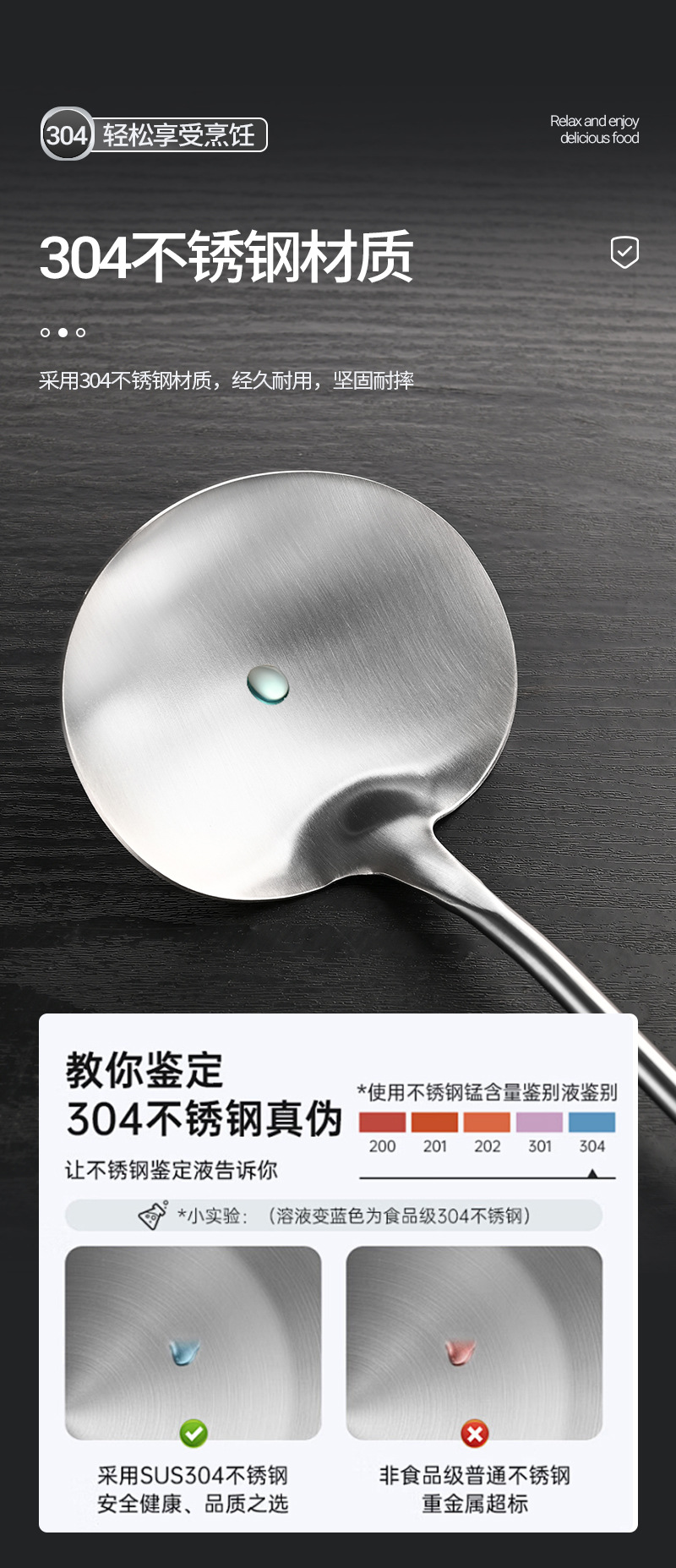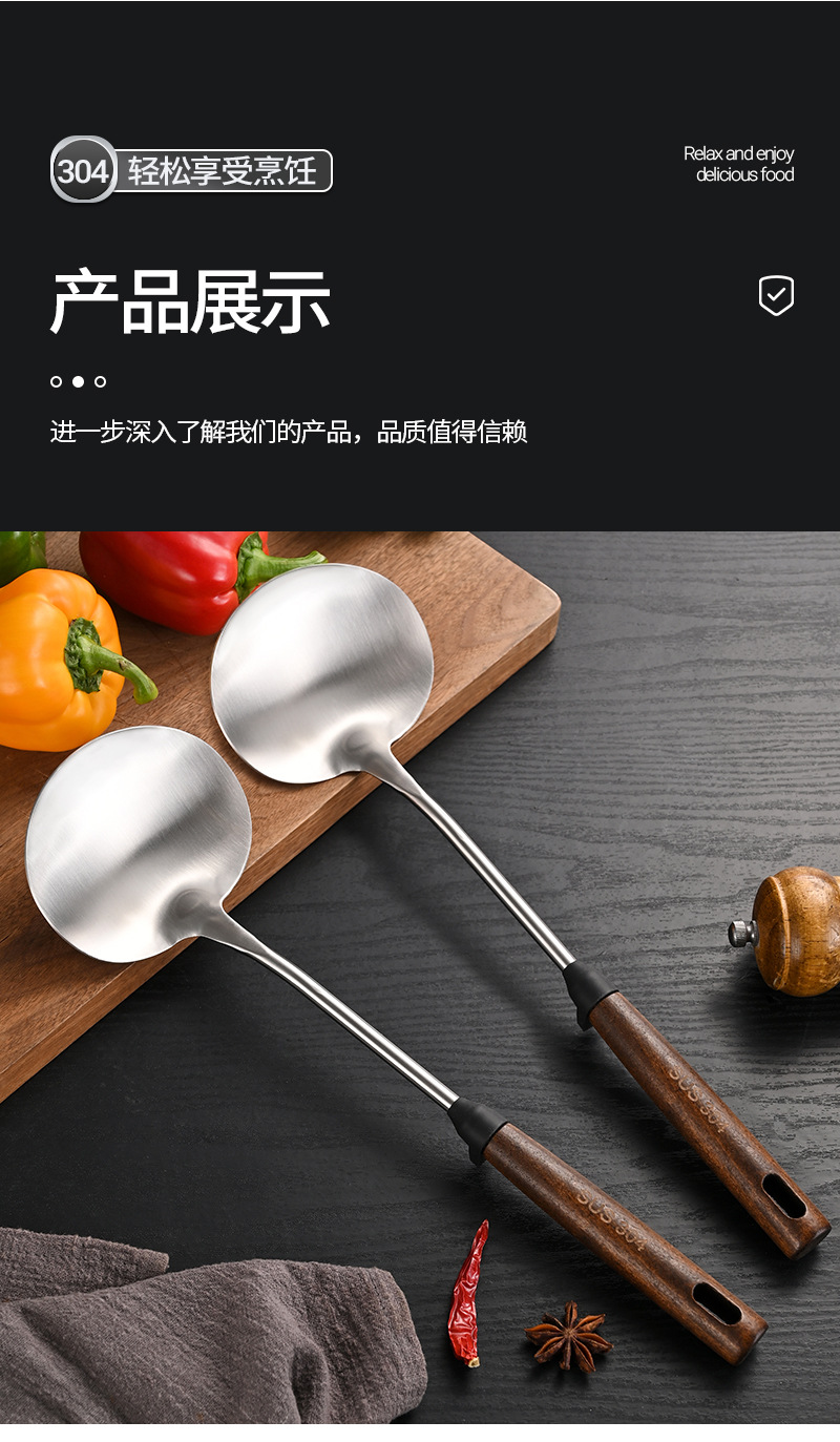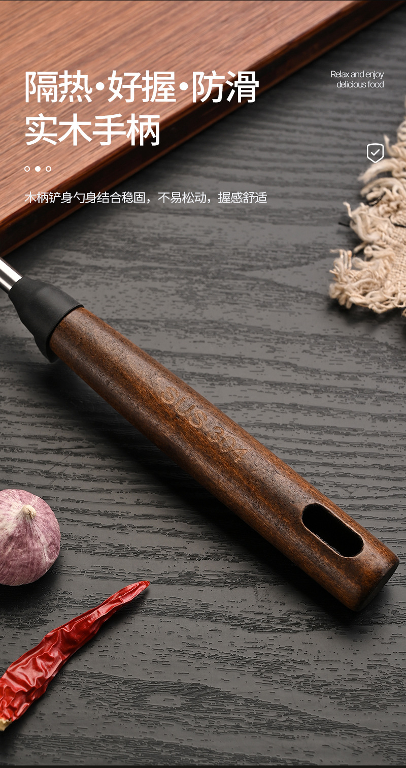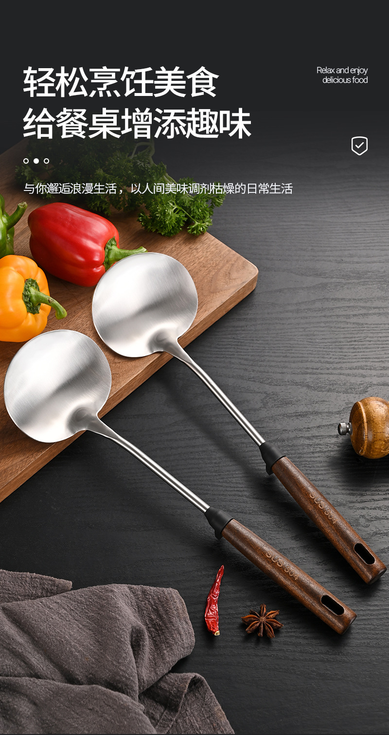 단단한 나무 요리 주걱을 요리하는 스테인리스 스틸 주방 크로스 보더 두꺼운 버섯 미끄럼 방지 304 냄비 주걱 스테인레스 스틸