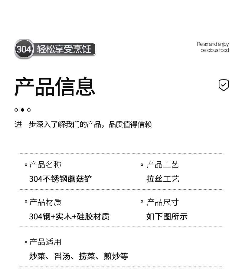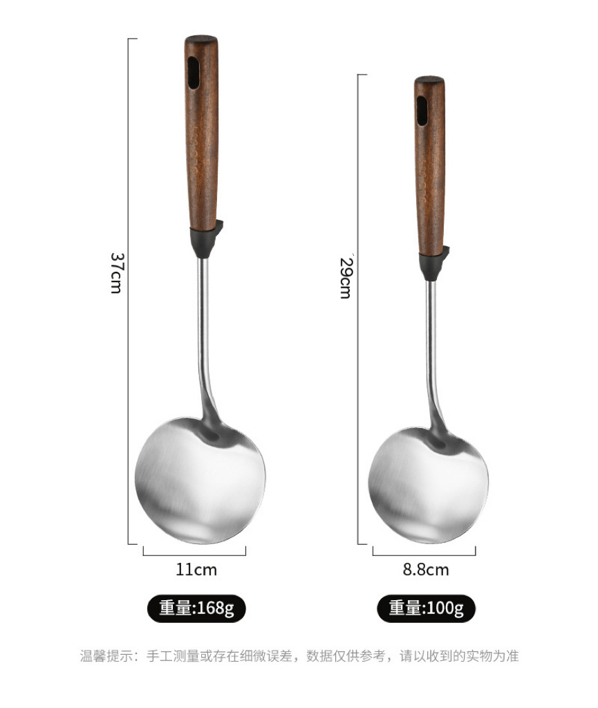 단단한 나무 요리 주걱을 요리하는 스테인리스 스틸 주방 크로스 보더 두꺼운 버섯 미끄럼 방지 304 냄비 주걱 스테인레스 스틸스토어 가기