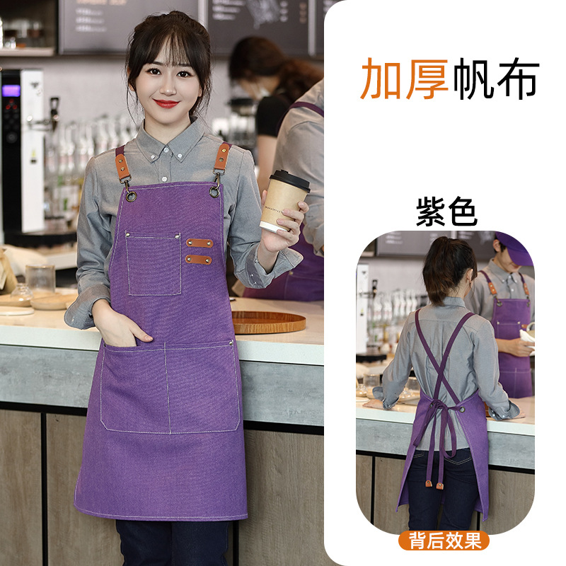 • 두꺼운 캔버스 FM-191 두꺼운 캔버스 중간 포켓 앞치마 보라색