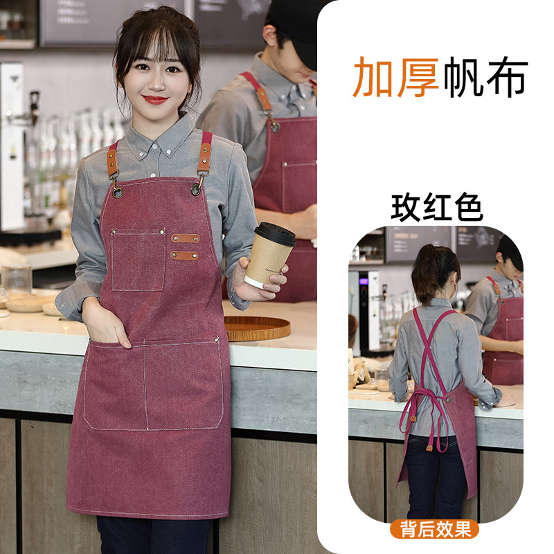 • 두꺼운 캔버스 FM-191 두꺼운 캔버스 중간 포켓 앞치마 로즈 레드