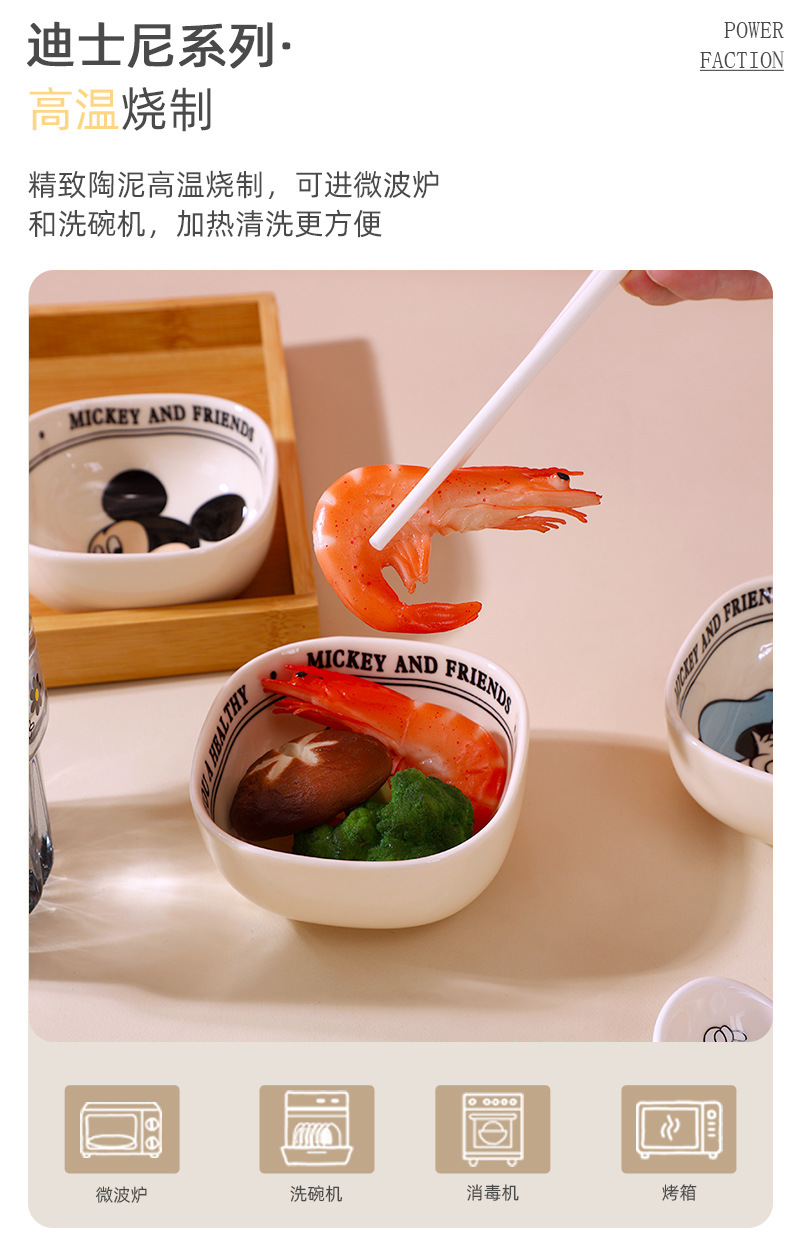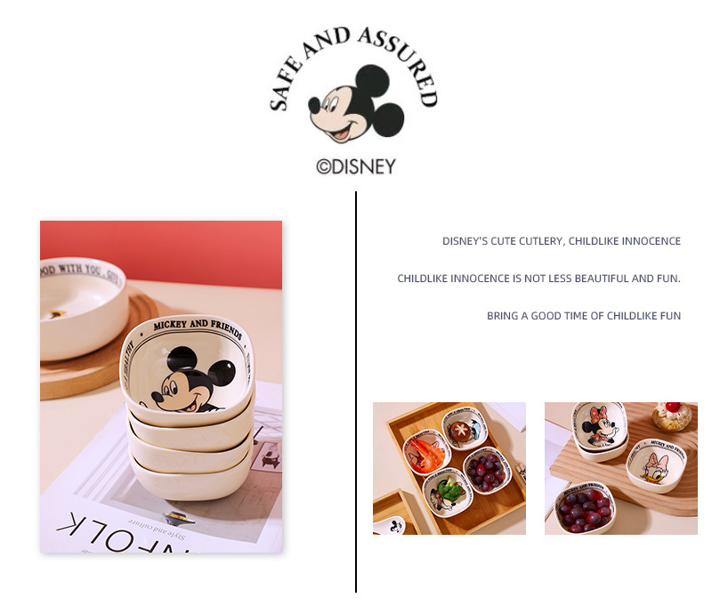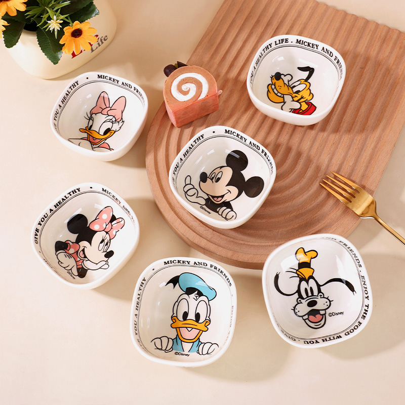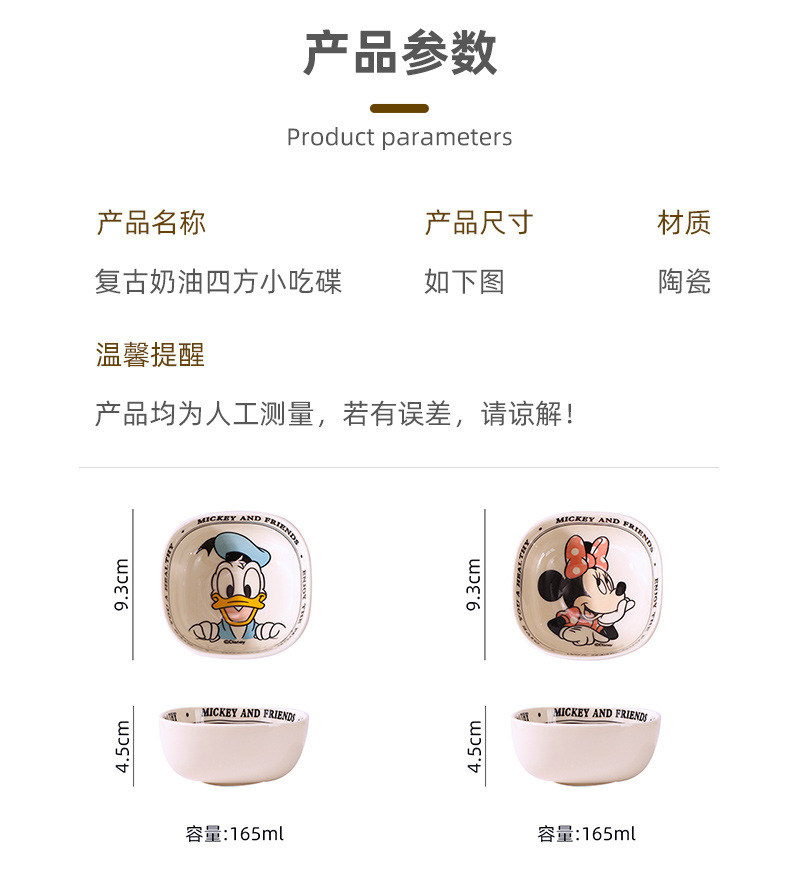 미키 시리즈 세라믹 간식 접시 스퀘어 레트로 크림 스타일 높은 색상 가치 만화 가정용 고온 저항하는 접시스토어 가기
