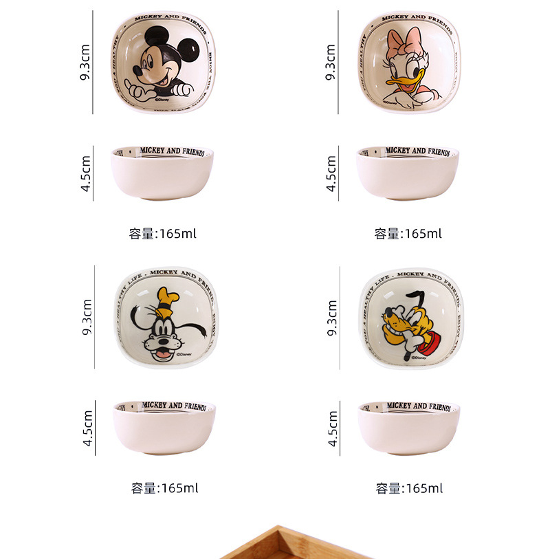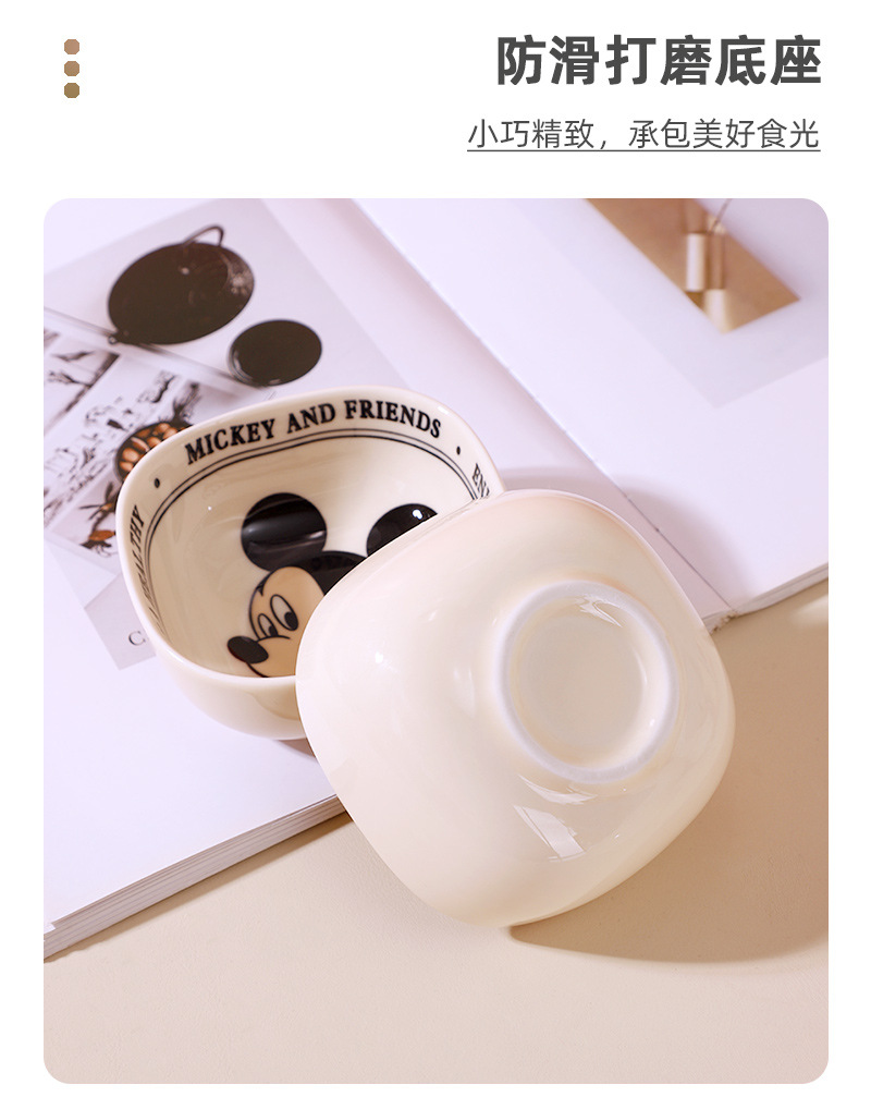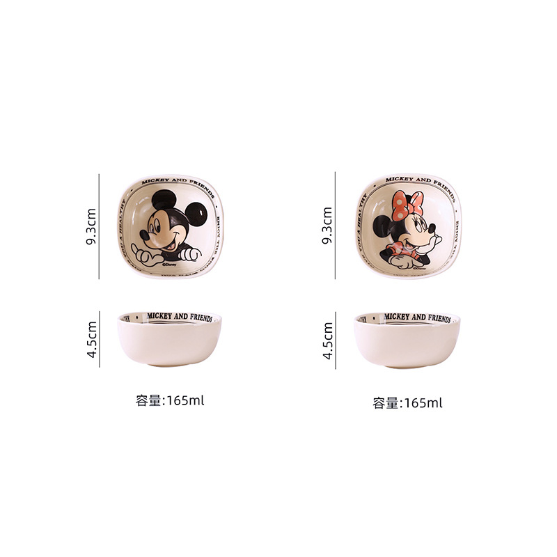 미키 시리즈 세라믹 간식 접시 스퀘어 레트로 크림 스타일 높은 색상 가치 만화 가정용 고온 저항하는 접시
