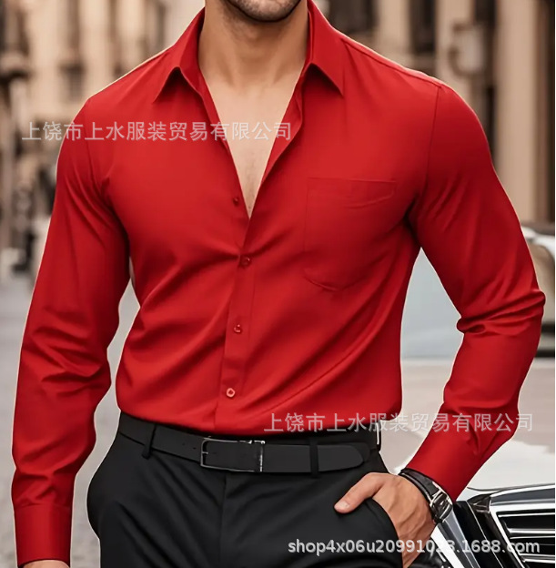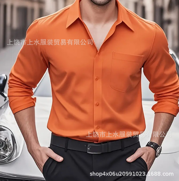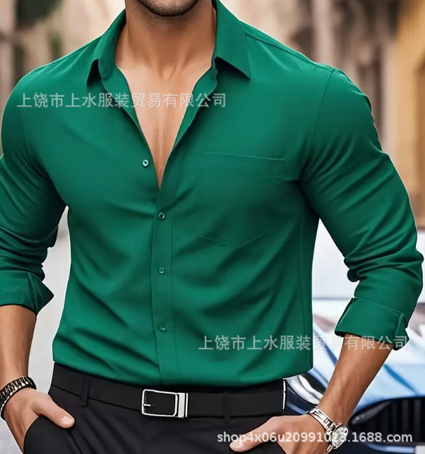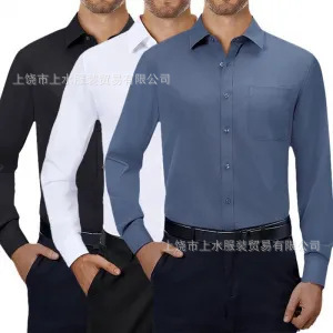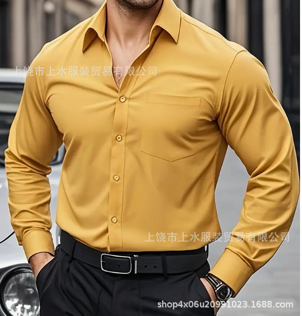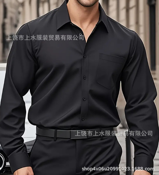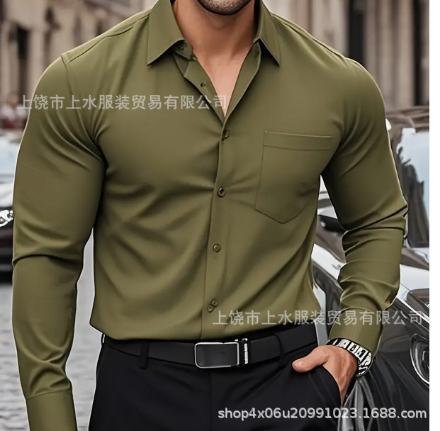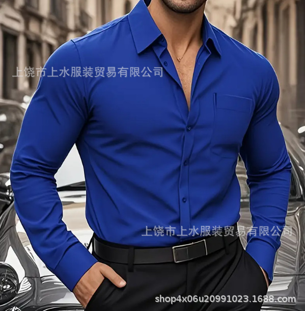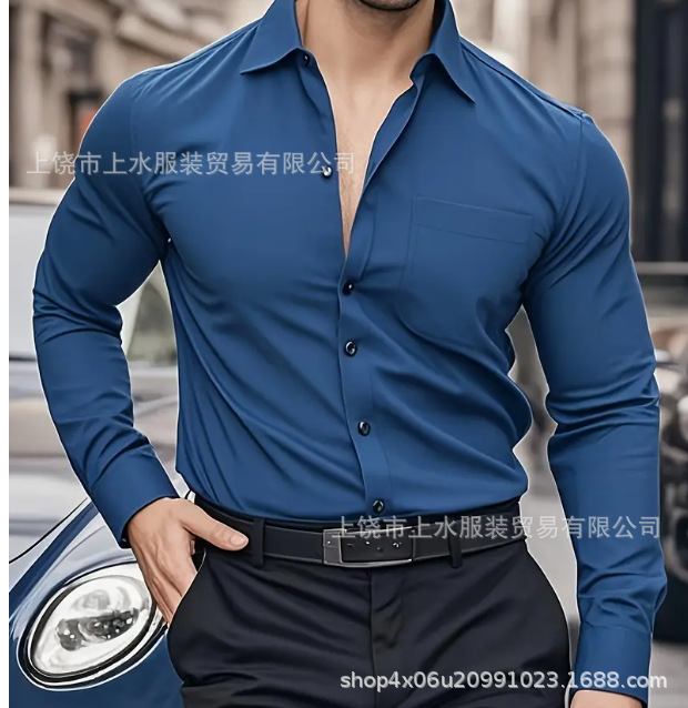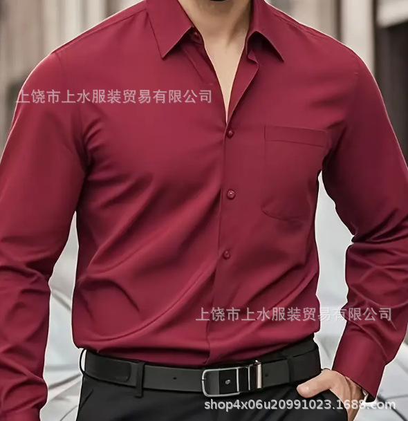 아마존 얇은 봄 남성 긴팔 솔리드 컬러 셔츠 통기성 탄성 주름 방지 솔리드 컬러 비즈니스 전문 탑 남성 의류스토어 가기