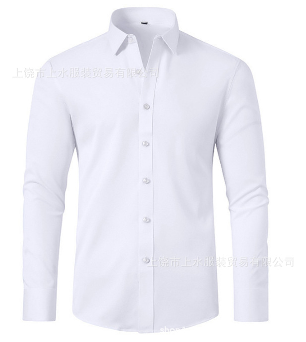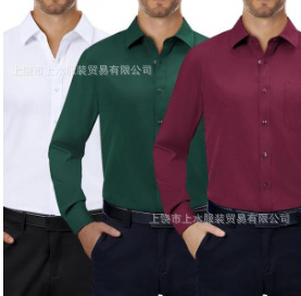 아마존 얇은 봄 남성 긴팔 솔리드 컬러 셔츠 통기성 탄성 주름 방지 솔리드 컬러 비즈니스 전문 탑 남성 의류