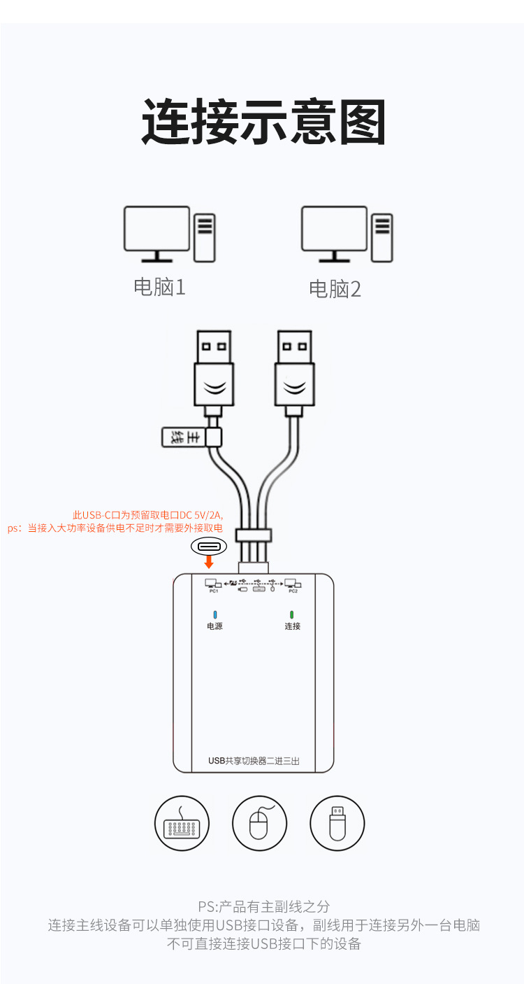 USB3.0 스위처 2입력 3출력 2.0 프린터 공유기 키보드 마우스 확장 도크 외부 연결