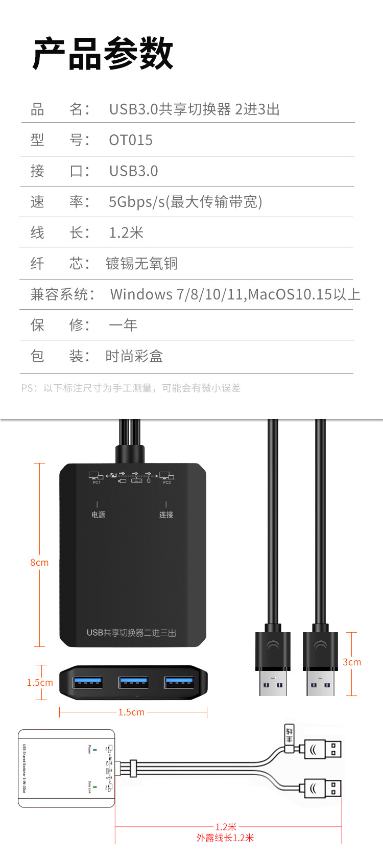 USB3.0 스위처 2입력 3출력 2.0 프린터 공유기 키보드 마우스 확장 도크 외부 연결스토어 가기