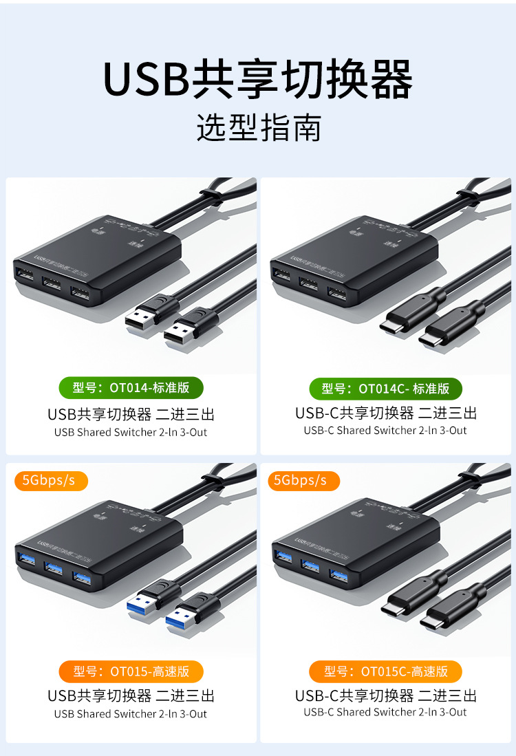 • C 포트 2개 및 3개 출력을 갖춘 USB3.0 공유 스위치