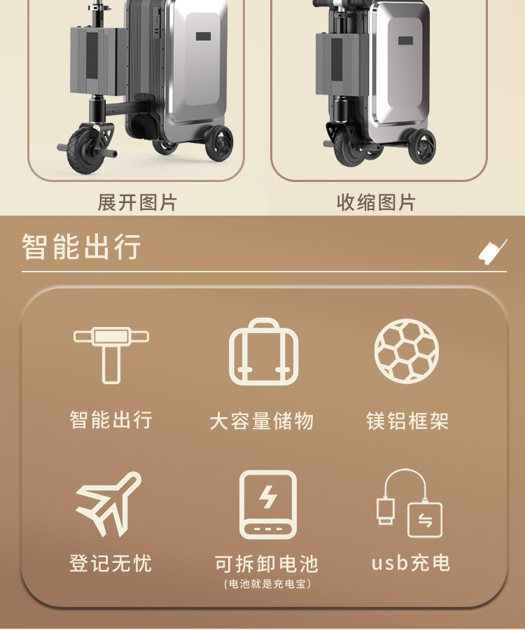 20 인치 스마트 라이딩 전기 가방 유인 풀로드 수하물 탑승 기술 휴대용 레저 워킹 아기