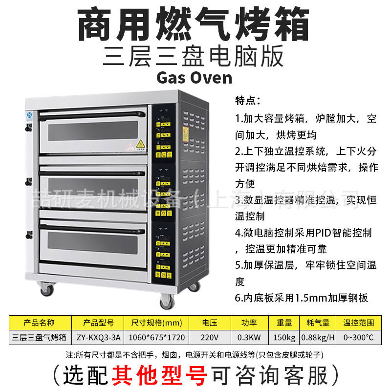 지능형 대용량 가스 오븐 상업용 독립 온도 제어 3 층 고출력 빵 케이크 피자 베이킹 오븐