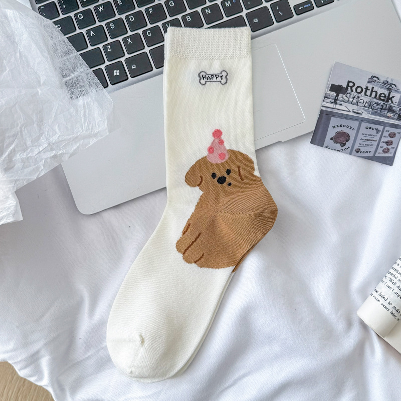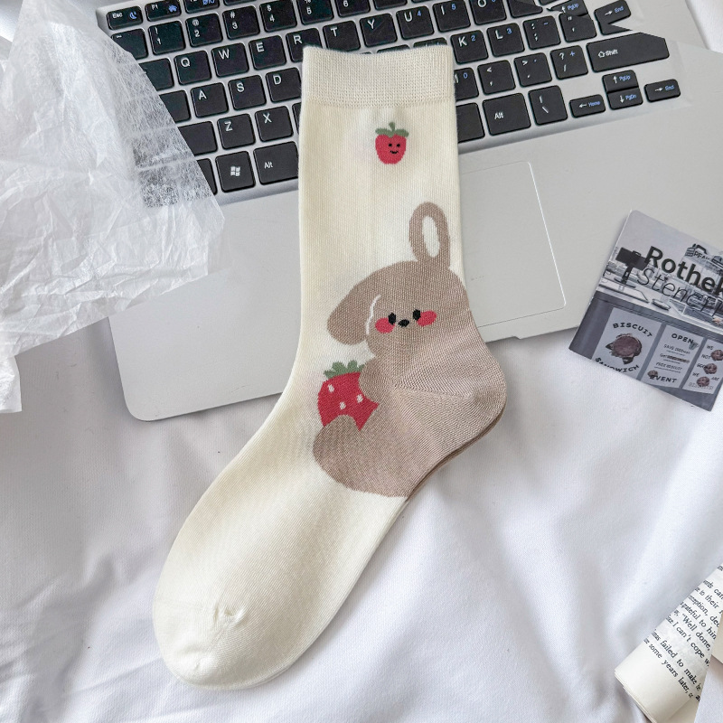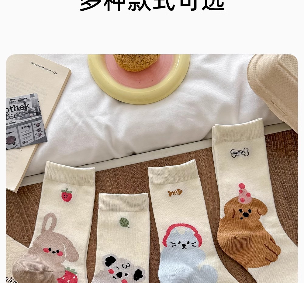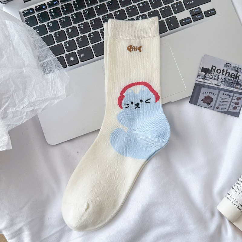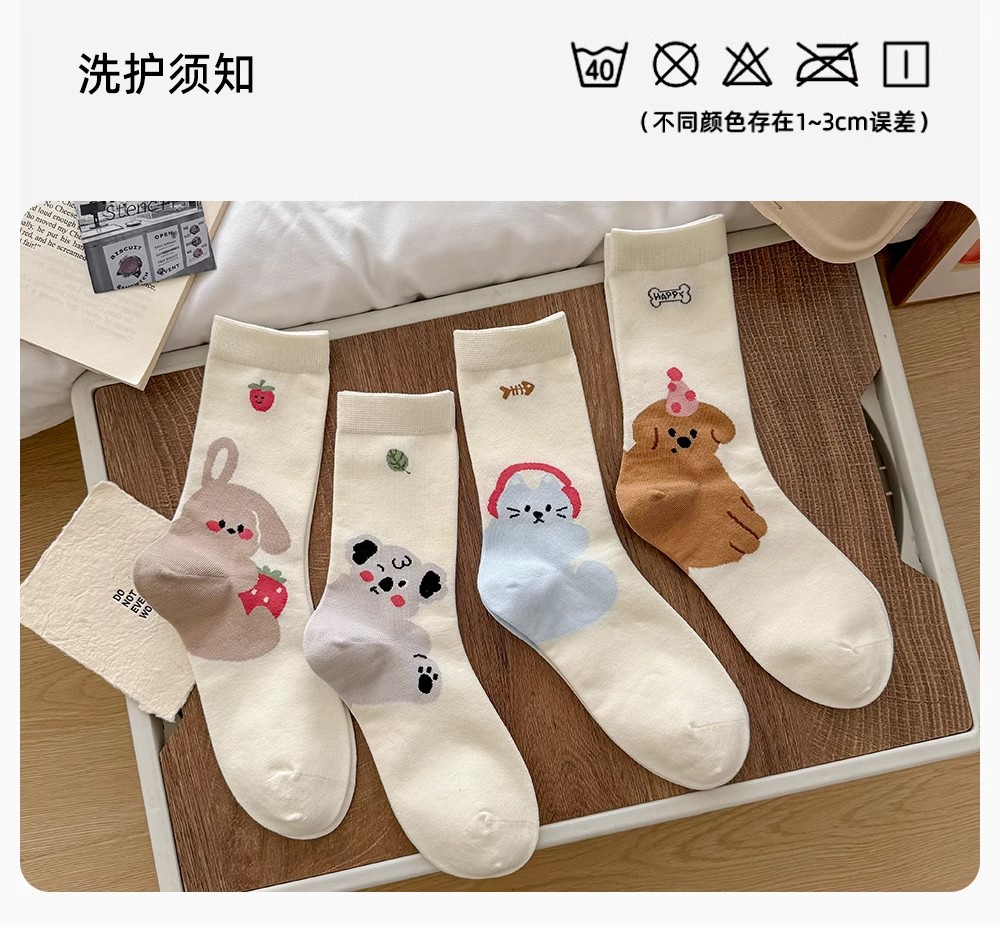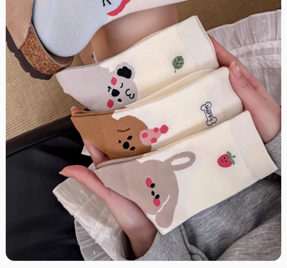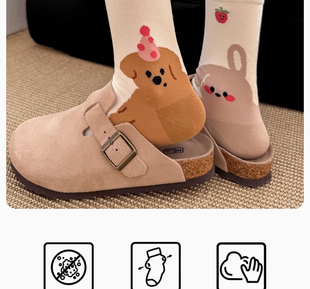 샤오홍슈 여성용 양말 가을 겨울 순면 중목 양말 일본풍 만화 방취 여성 양말 인스 트렌드 보풀 방지 양말스토어 가기