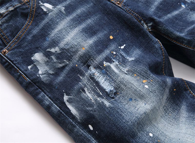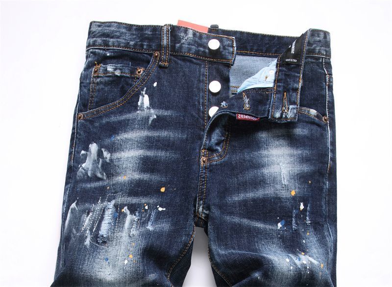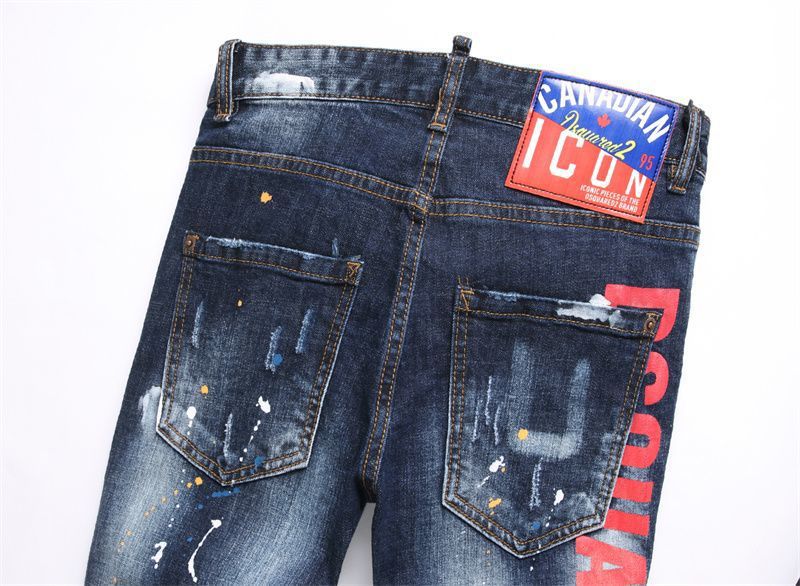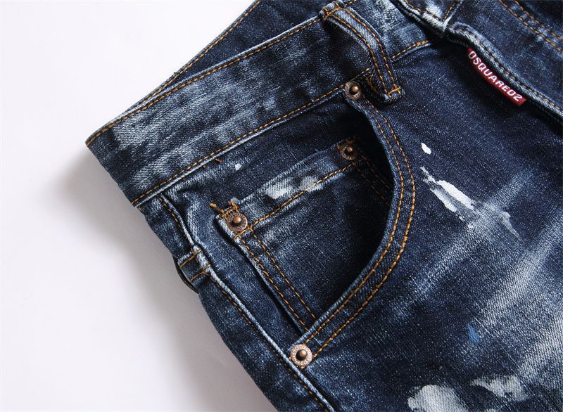 라이트 럭셔리 D2 하이 버전 유럽과 미국의 가짜 찢어진 프린트 패치 슬림 남성 청바지 패션 스트레치 4018스토어 가기