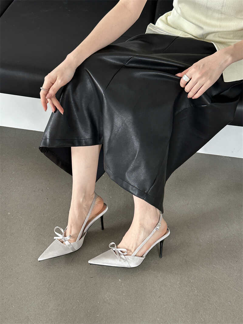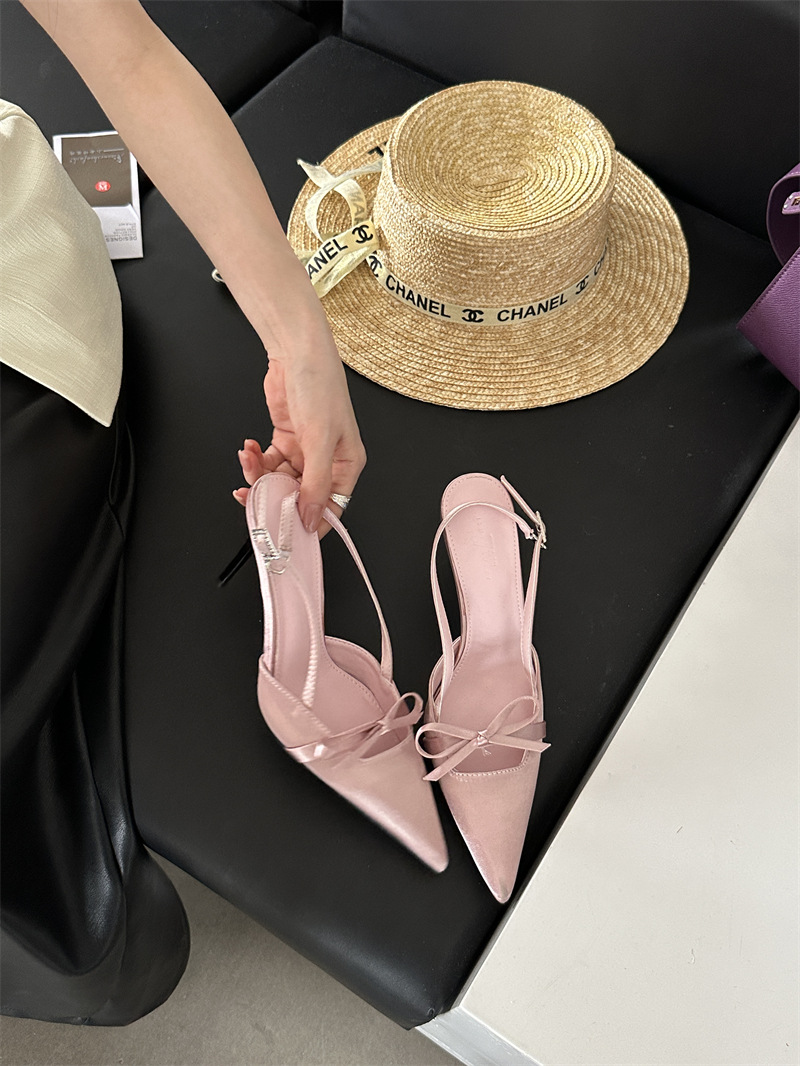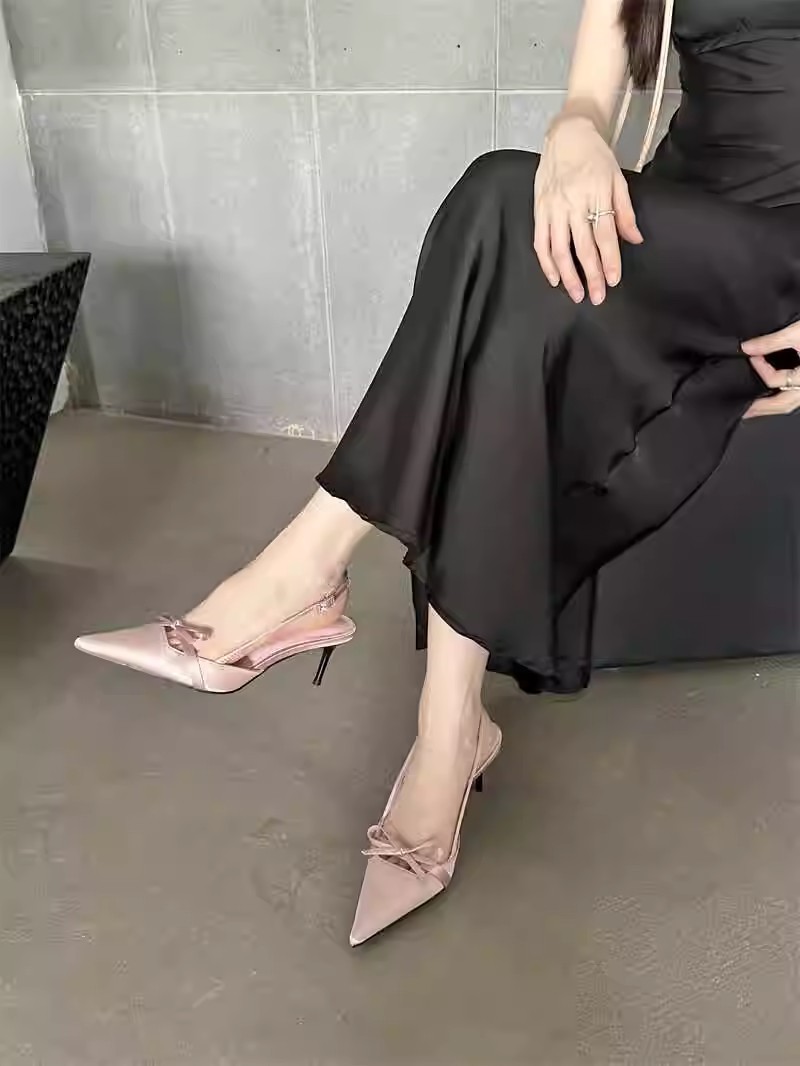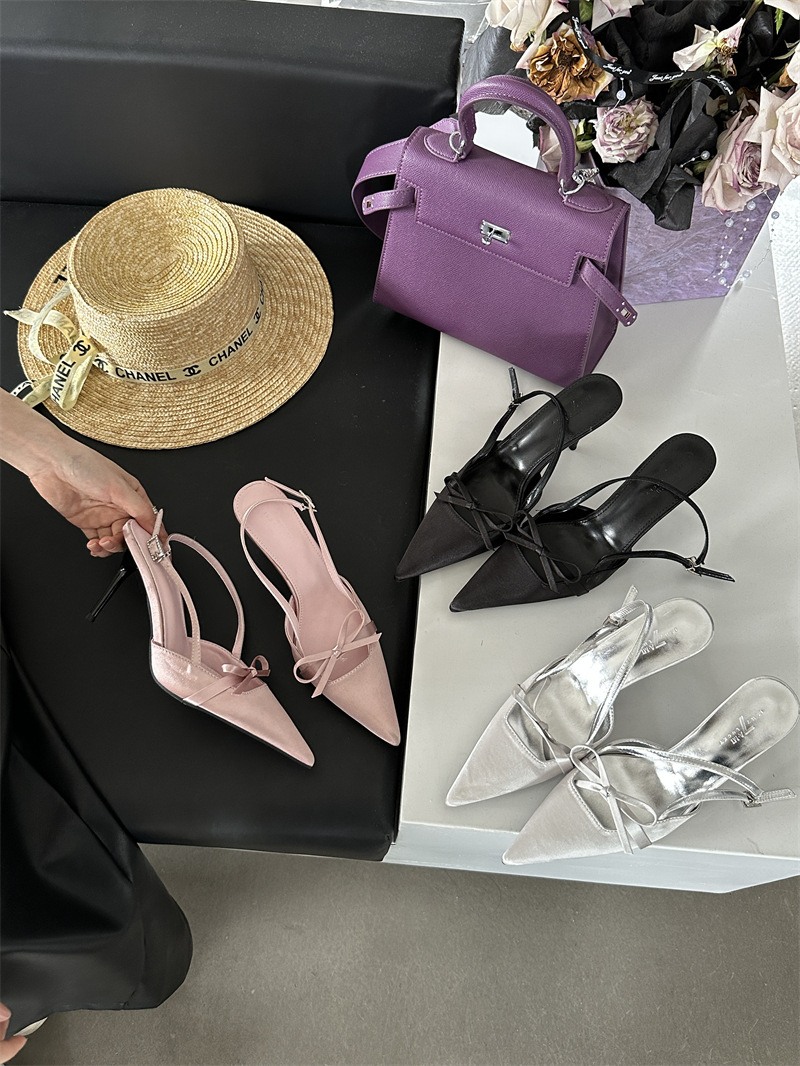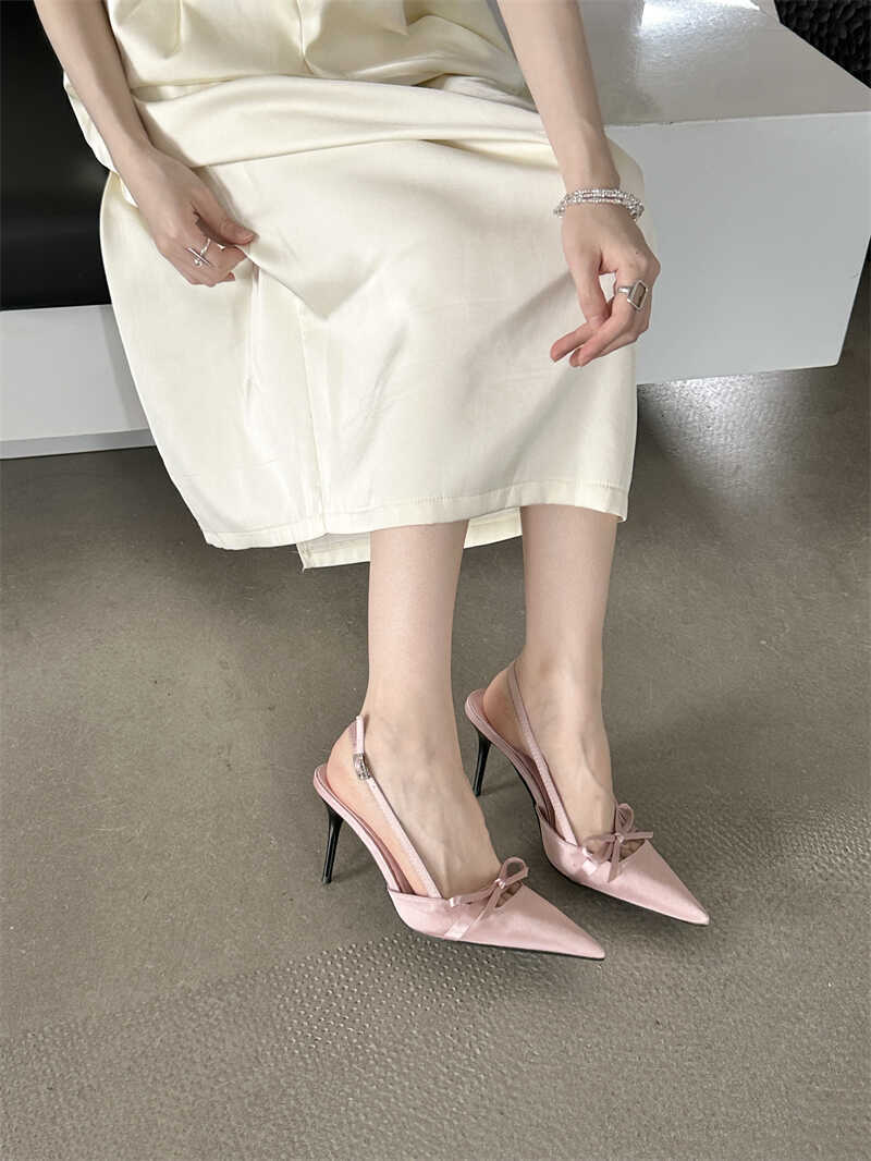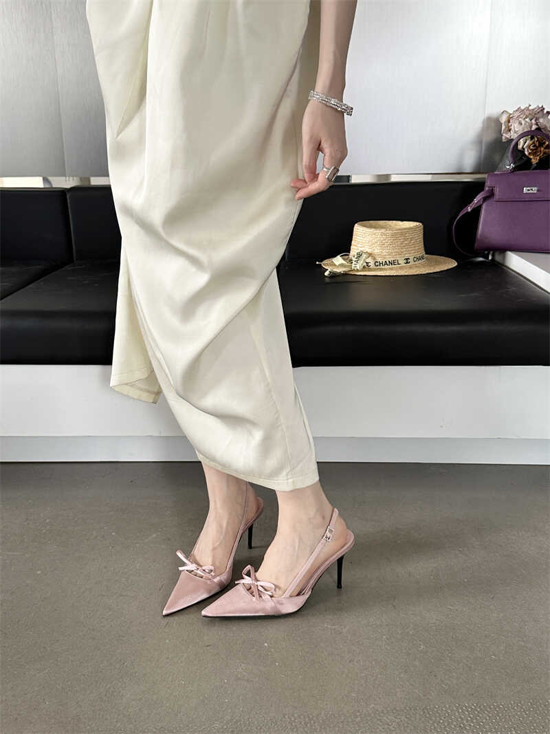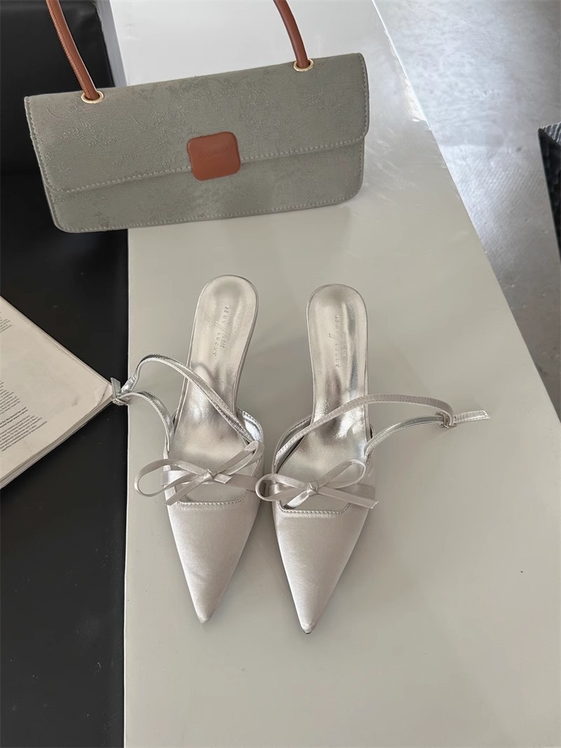 뒤가 빈 샌들, 뾰족한 앞코, 새틴 리본, 2026년 신상 여성 여름용, 원라인 버클 스트랩, 얇은 굽 하이힐스토어 가기