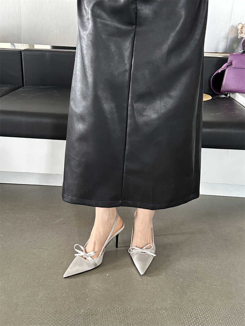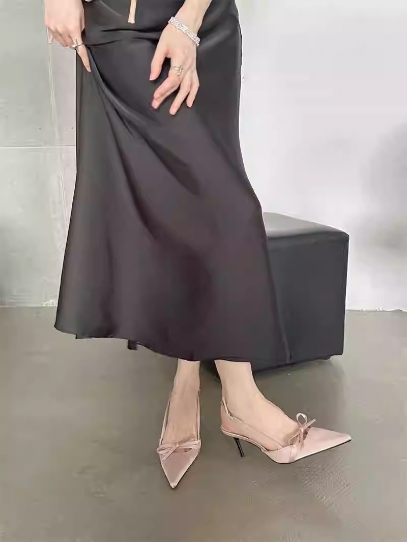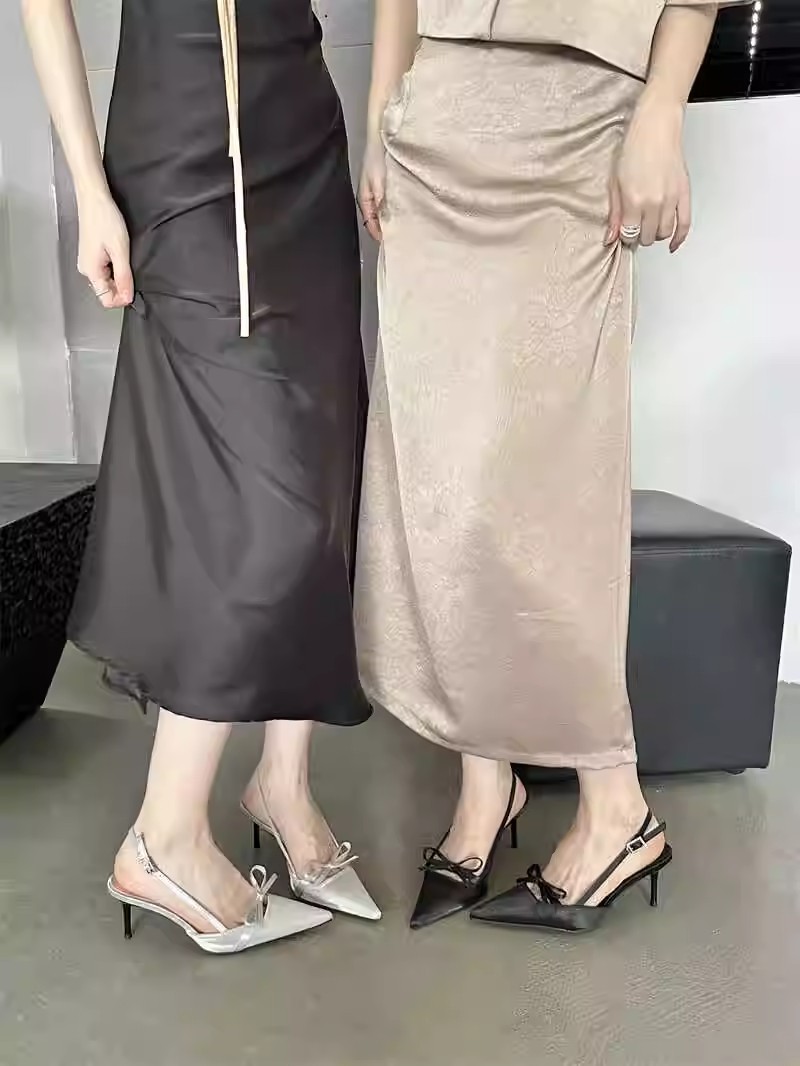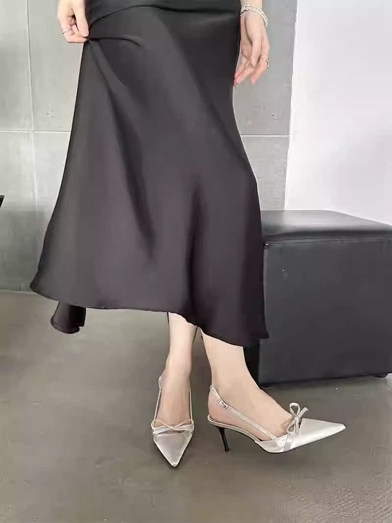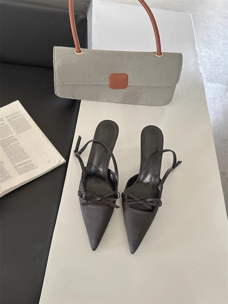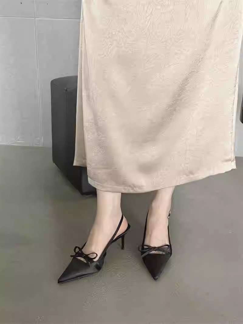 뒤가 빈 샌들, 뾰족한 앞코, 새틴 리본, 2026년 신상 여성 여름용, 원라인 버클 스트랩, 얇은 굽 하이힐스토어 가기