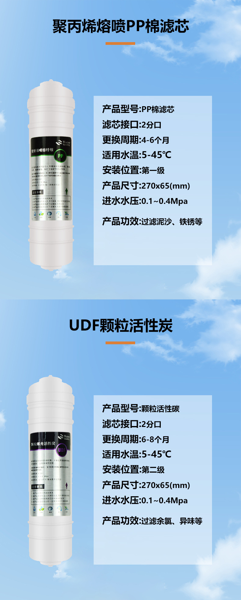 • 빠른 연결 PP 면 필터 요소