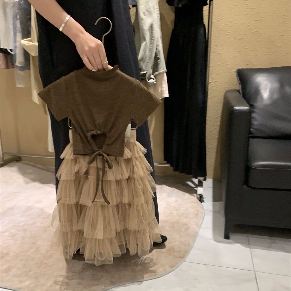 2025 년 여름 새 백리스 티셔츠 한국 소녀 케이크 스커트 니치 Ins 스타일 세트 여성 보물 투피스 세트스토어 가기
