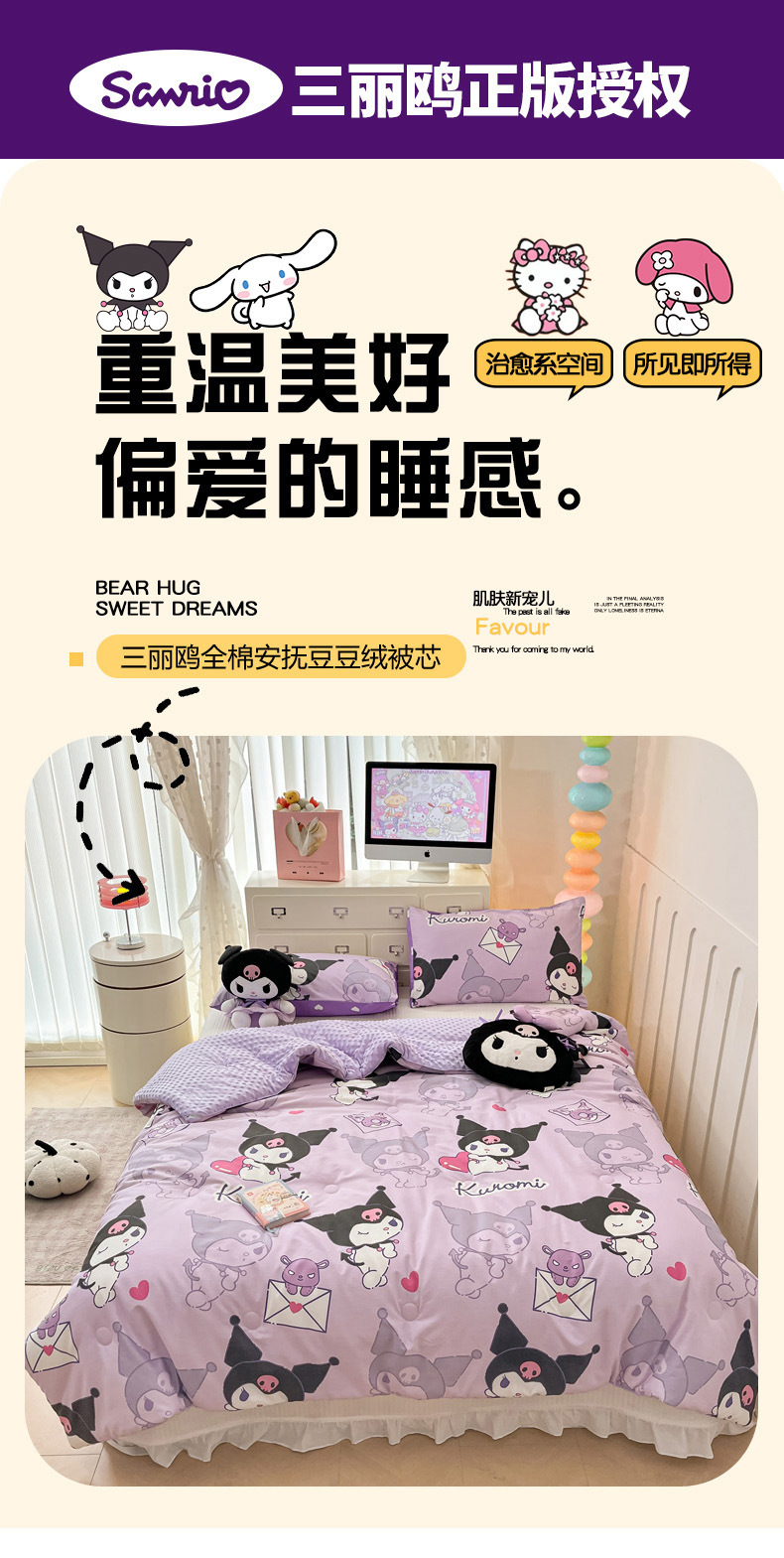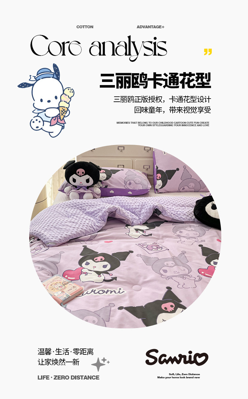 2025新款正版授权三丽鸥A版纯棉B版安抚豆豆绒春秋被冬被豆豆被