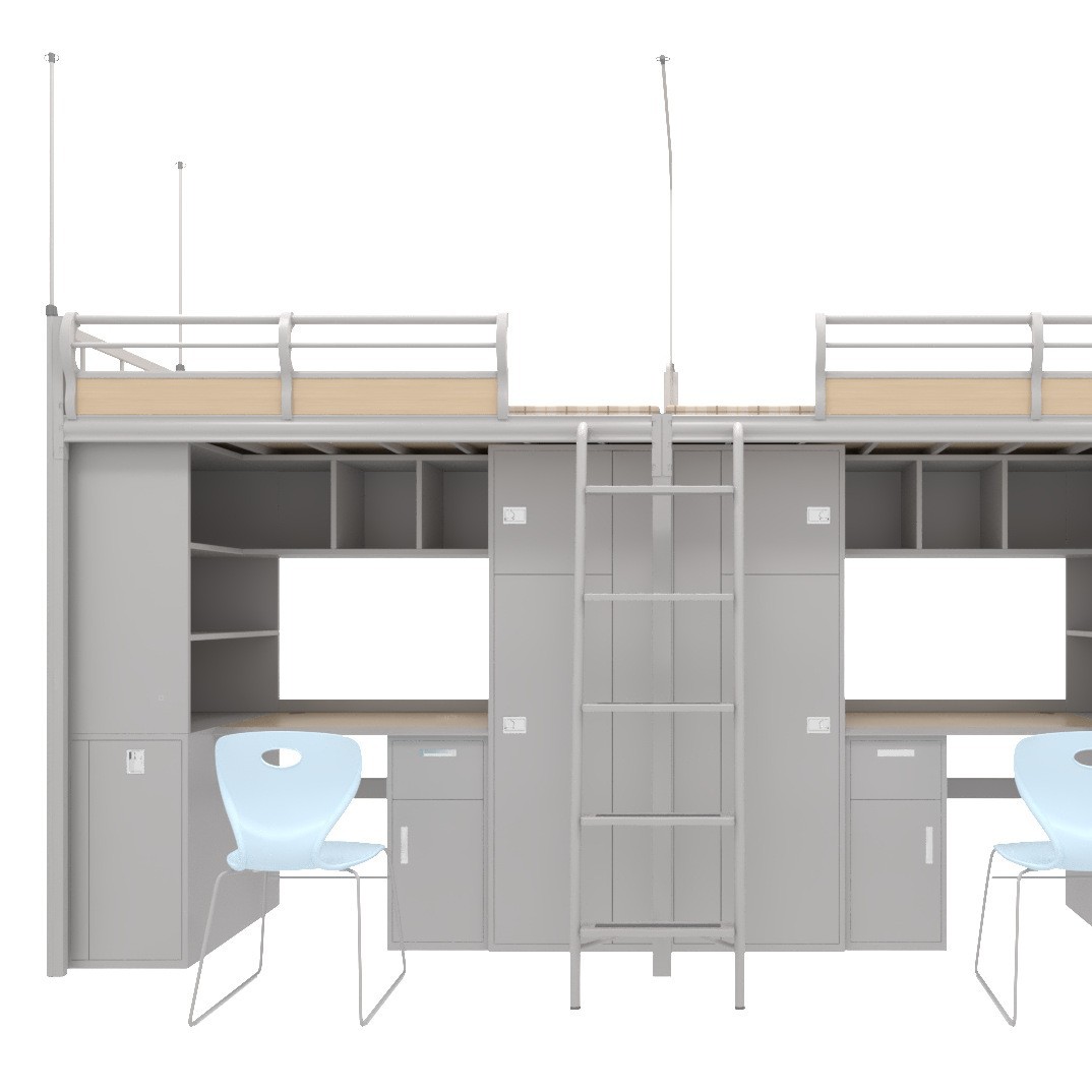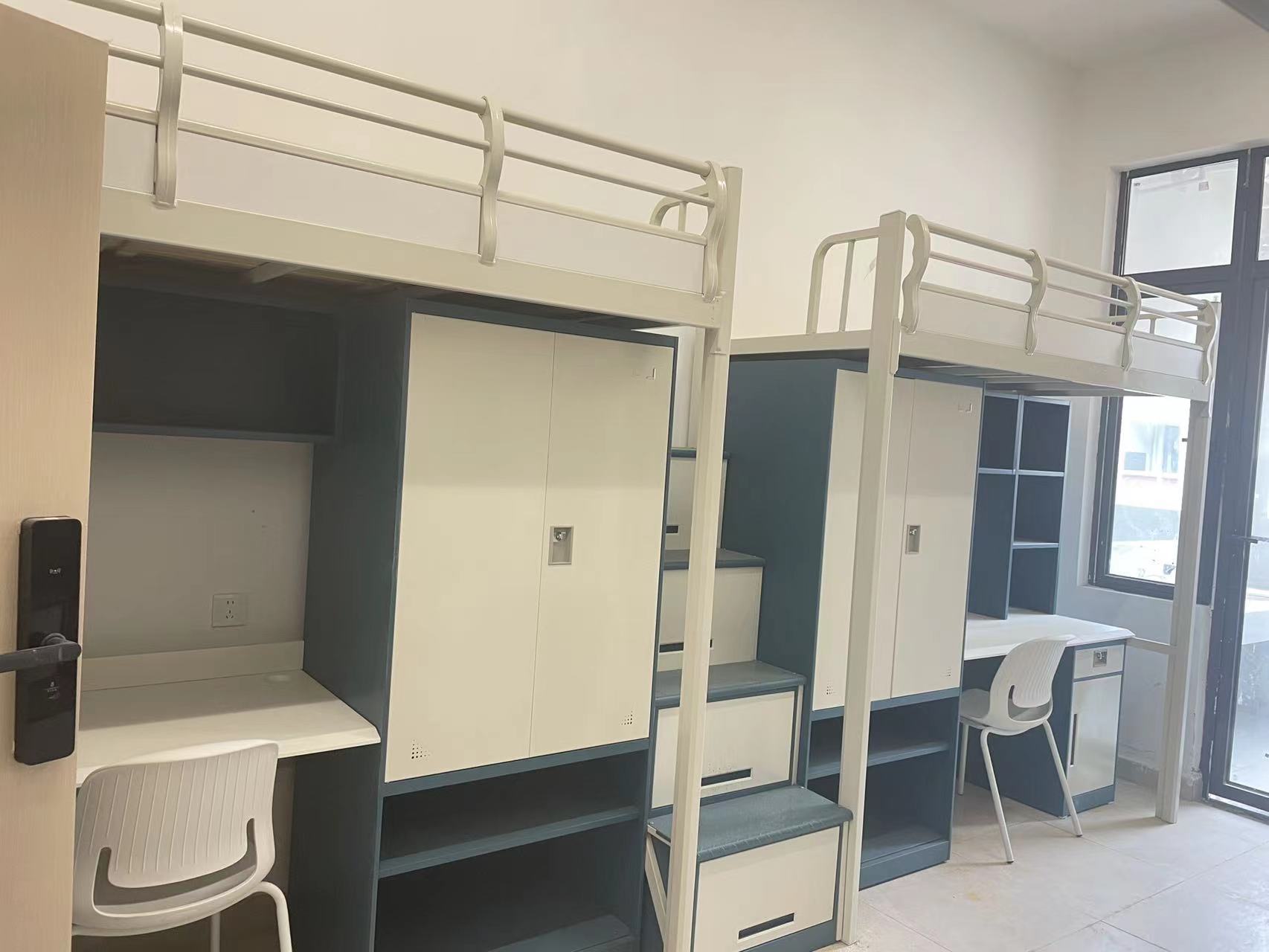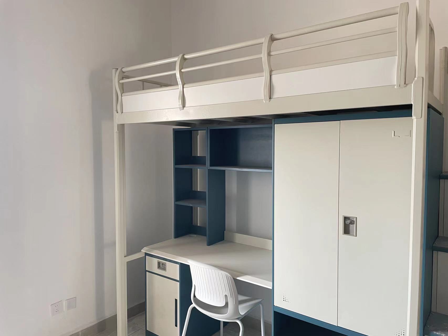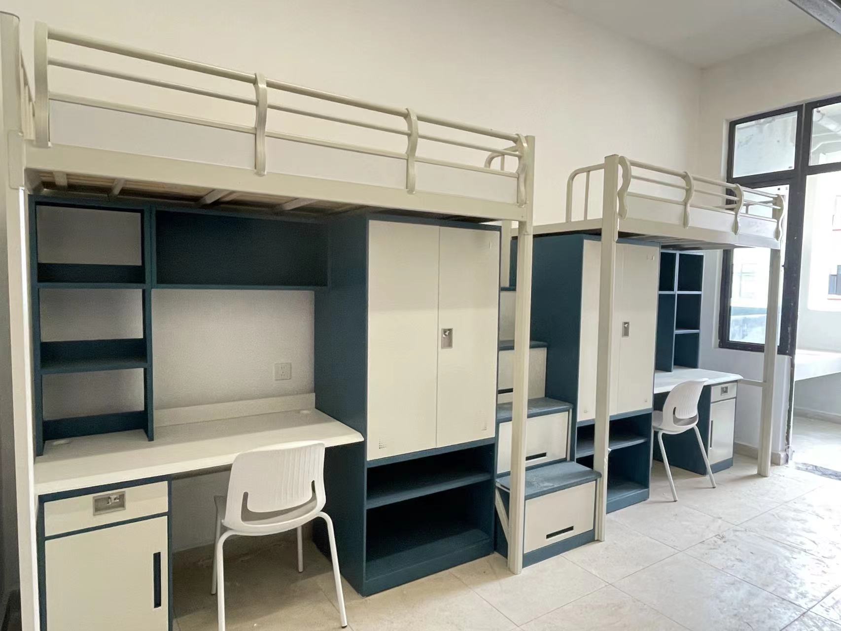 침대와 옷장이 결합된 철제 및 목재 조합의 이층 침대, 침실용 철제 침대, 대학생 기숙사용 상하 침대, 책상이 있는 더블 침대