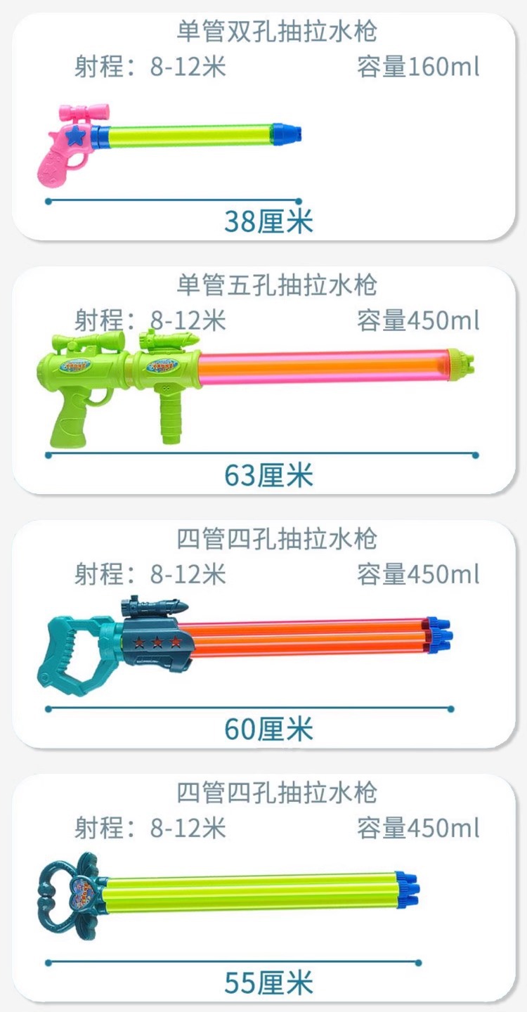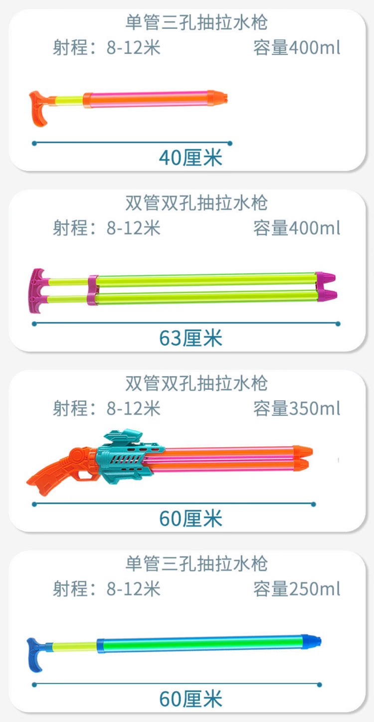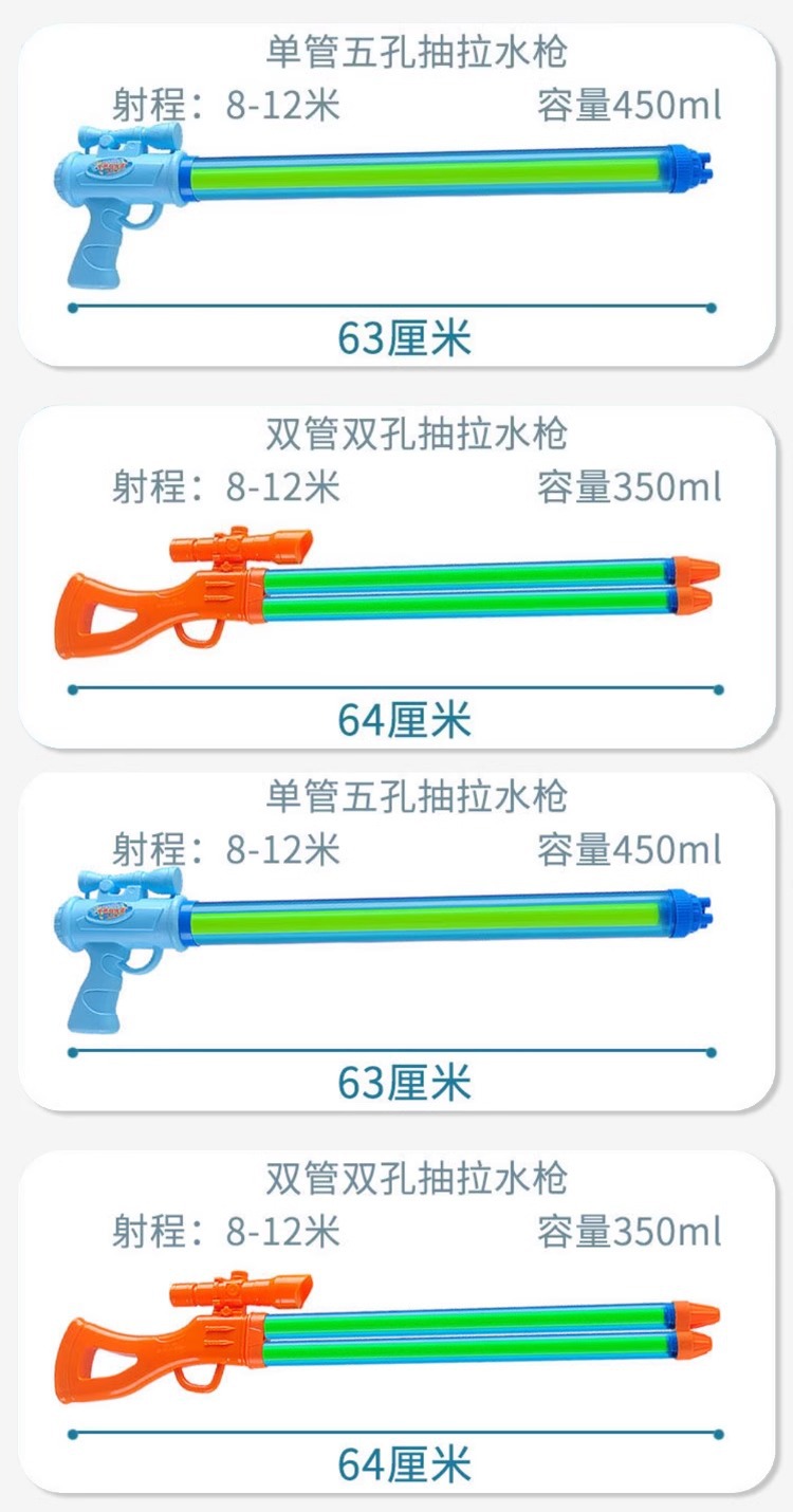 • 단일 튜브 이중 구멍 풀아웃 물총 38cm