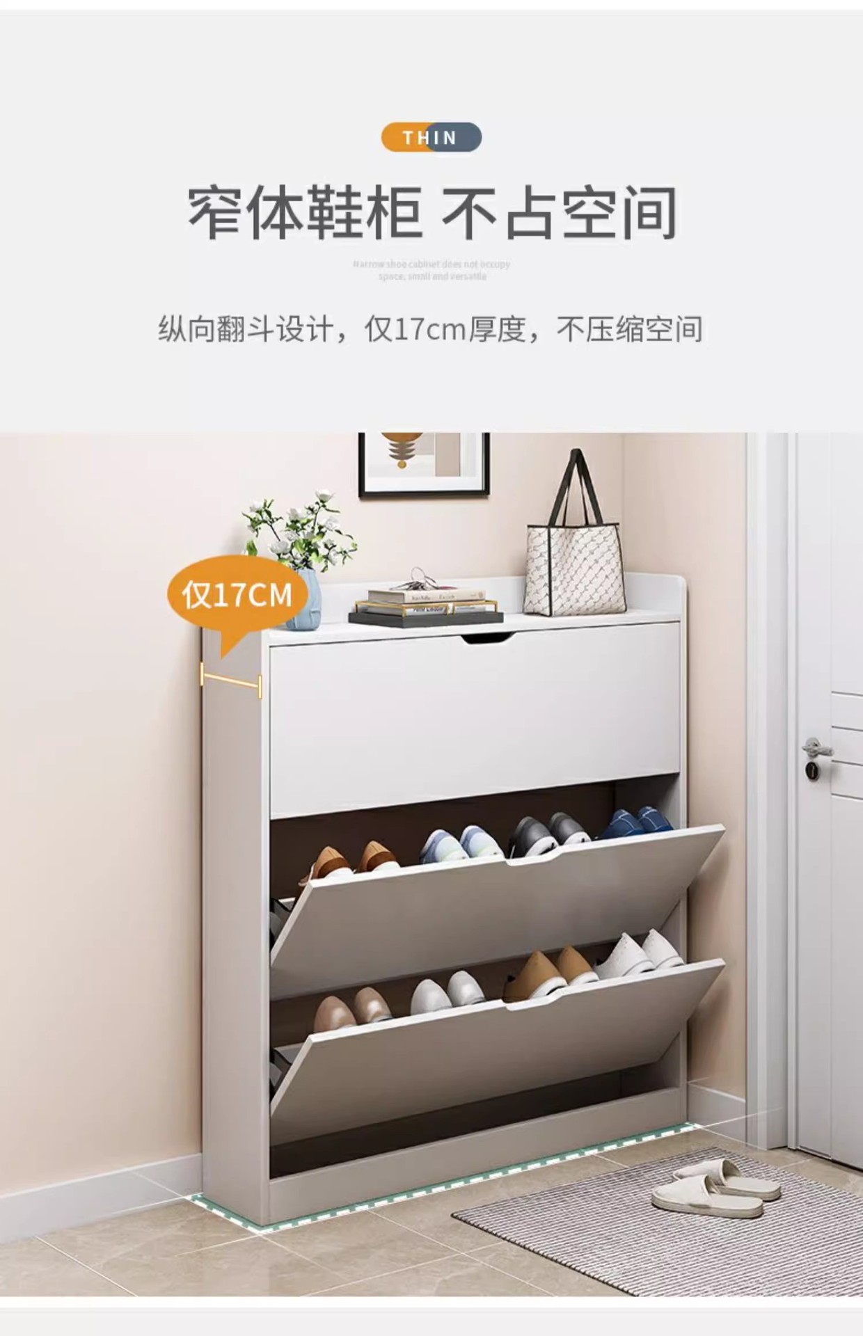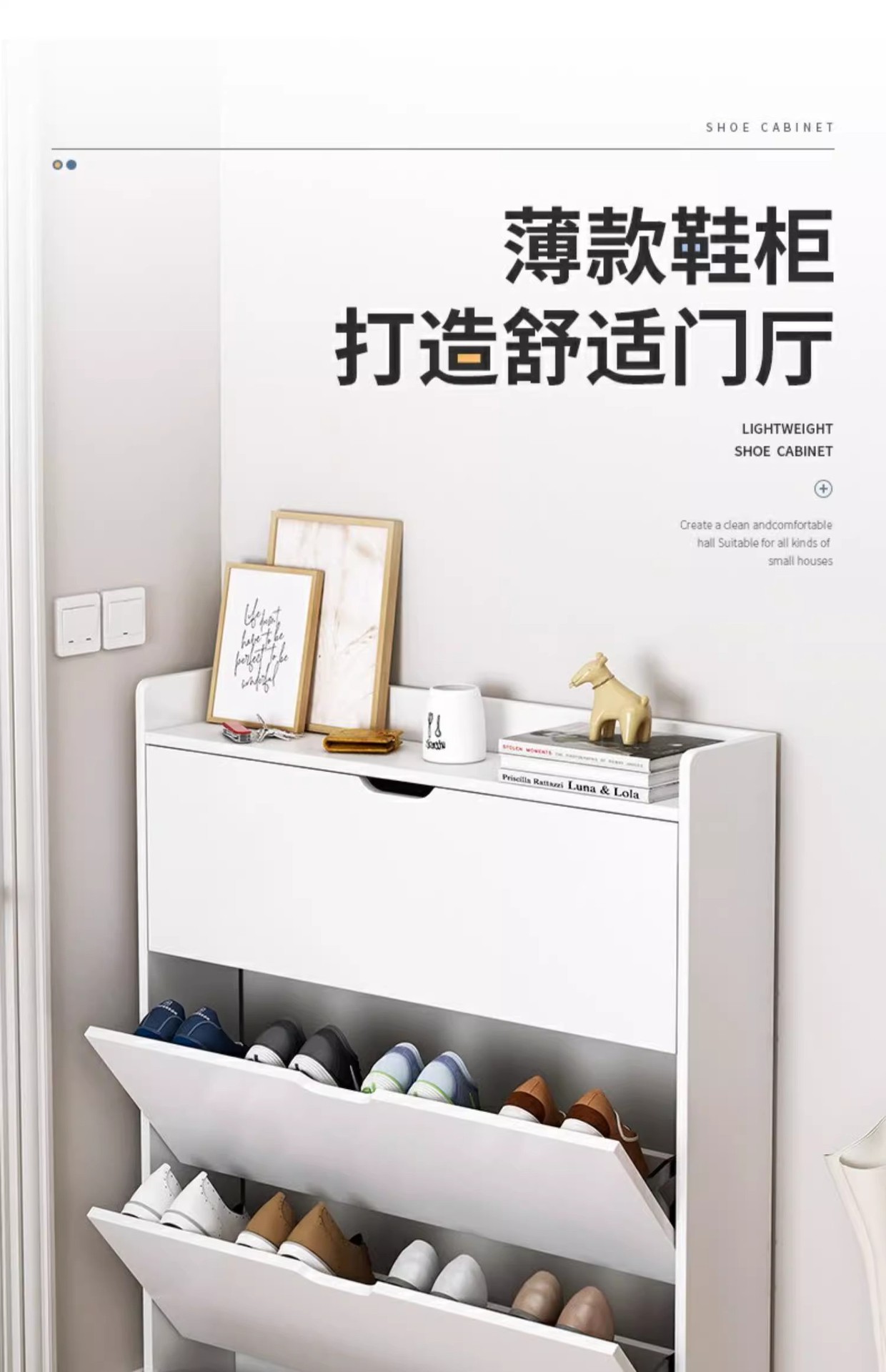초슬림 신발장, 가정용 현관 수납장, 벽걸이형 올인원 캐비닛, 소형 접이식 복도 현관 신발장
