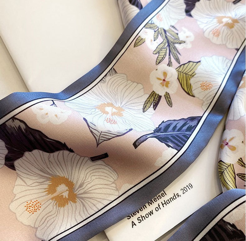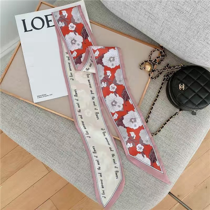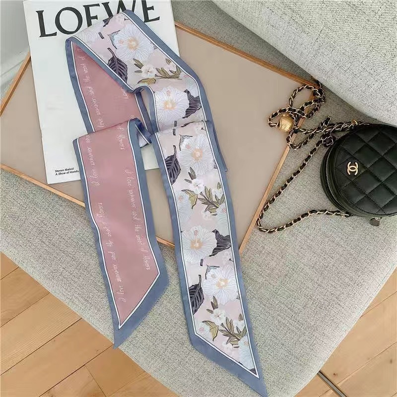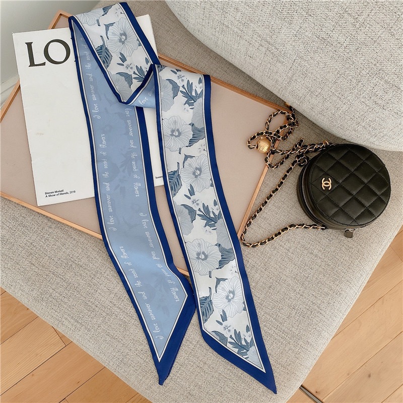 봄 여름 신상 꽃무늬 실크 스카프, 우아하고 활용도가 높은 긴 머리끈, 리본, 분위기 있는 셔츠와 작은 스카프스토어 가기