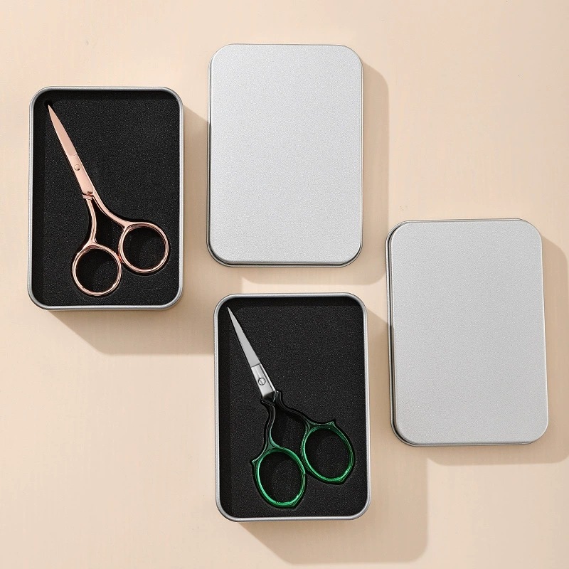 제조업체는 이제 헤어 스테인레스 스틸 메이크업 뷰티 가위 눈썹 트리밍 가위 수염 코 눈썹 작은 가위 포장 철 상자