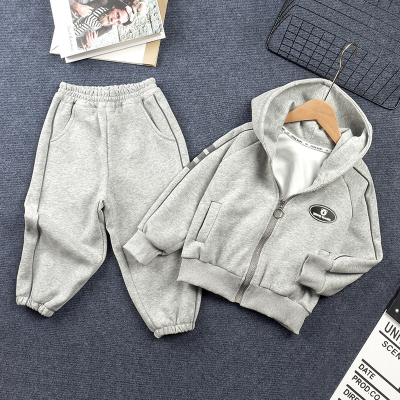 아동 의류 도매 아동 스포츠 정장 봄 캐주얼 느슨한 단색 재킷 바지 중대형 아동 지퍼 셔츠 탑스토어 가기