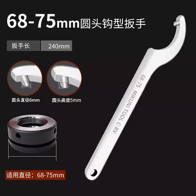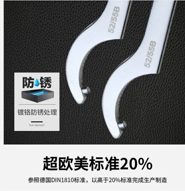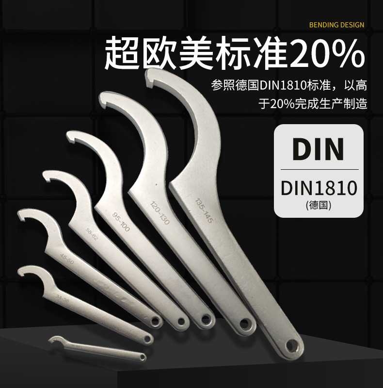 라운드 헤드 크롬 바나듐 스틸 크롬 도금 초승달 렌치 충격 흡수 스프링 라운드 너트 워터 미터 커버 렌치 후크 타입 C 렌치 M &