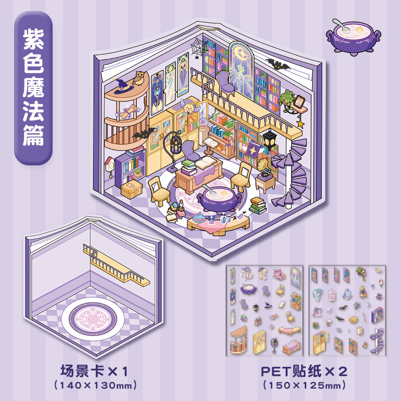 한국 스타일 귀여운 풍경 스티커 창조적 인 만화 손 계정 3D 스테레오 스토리지 마이크로 장면 콜라주 DIY 작은 스티커