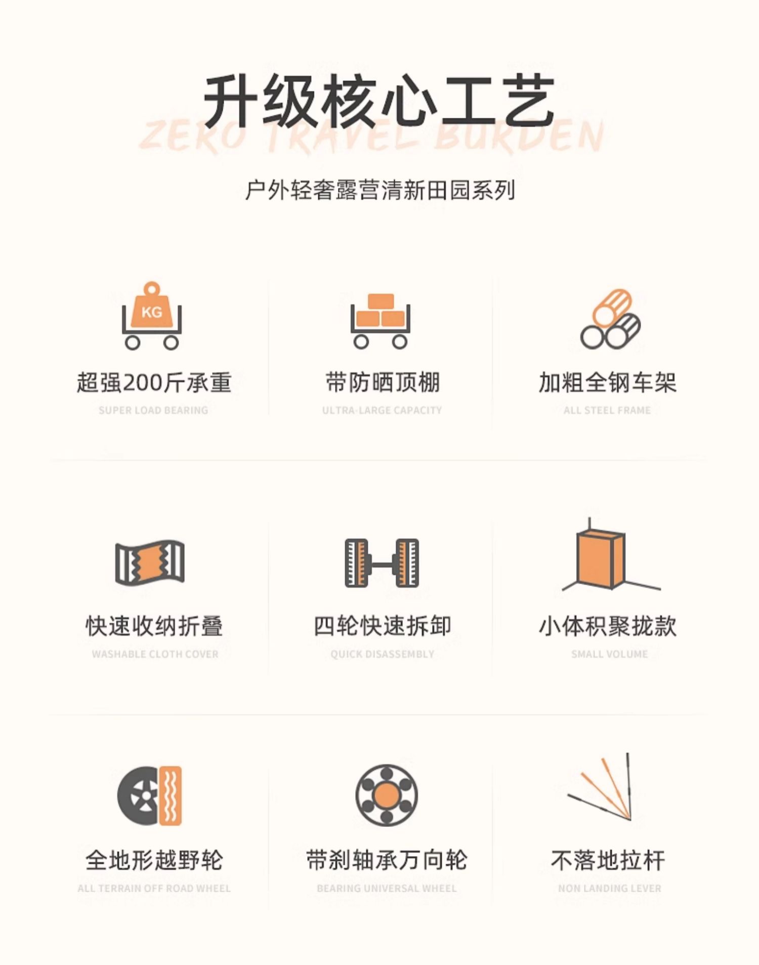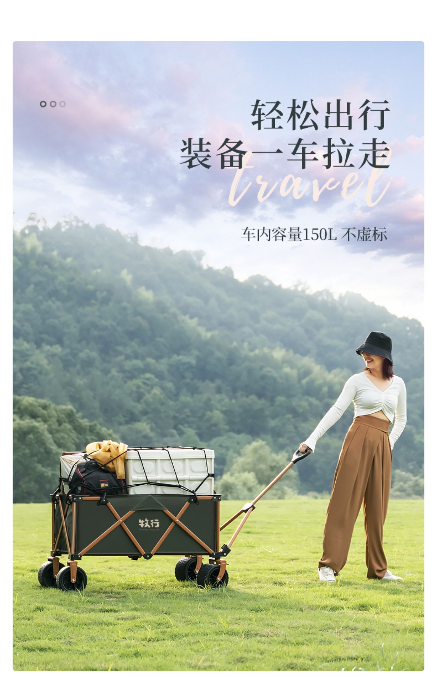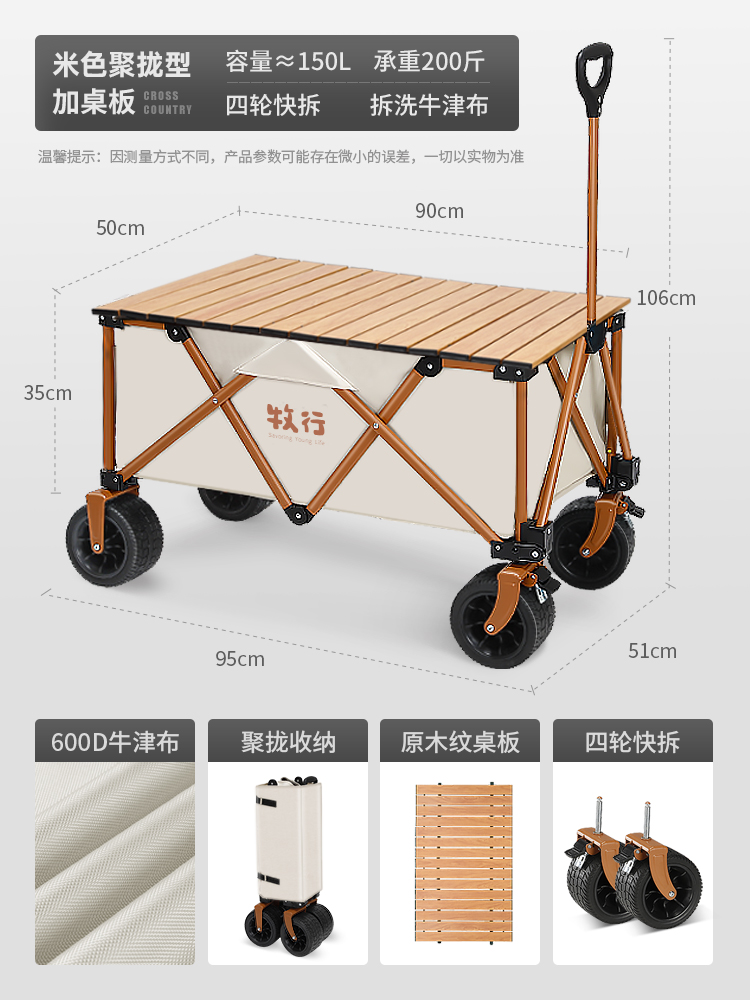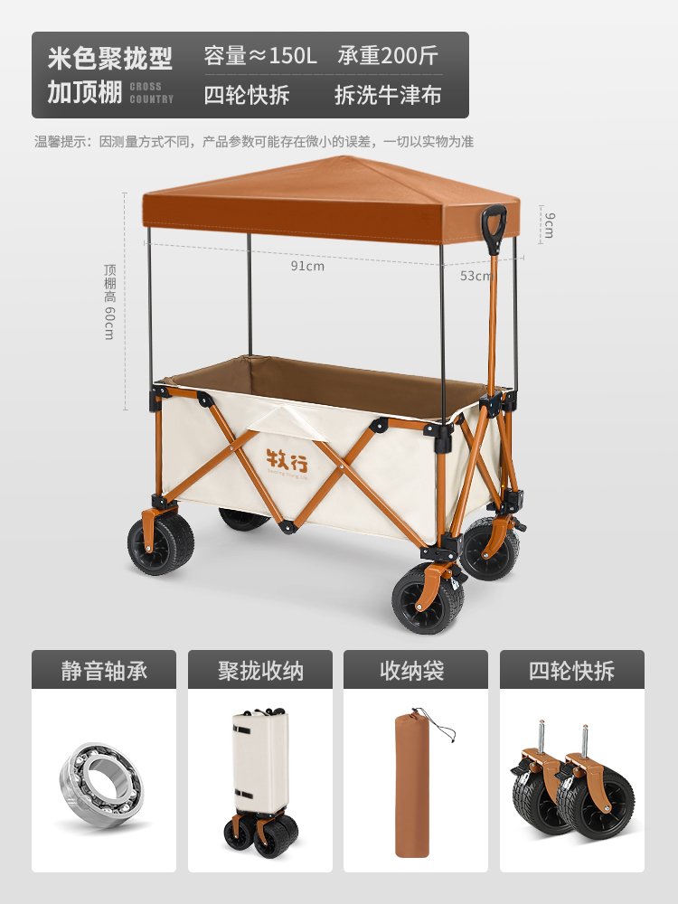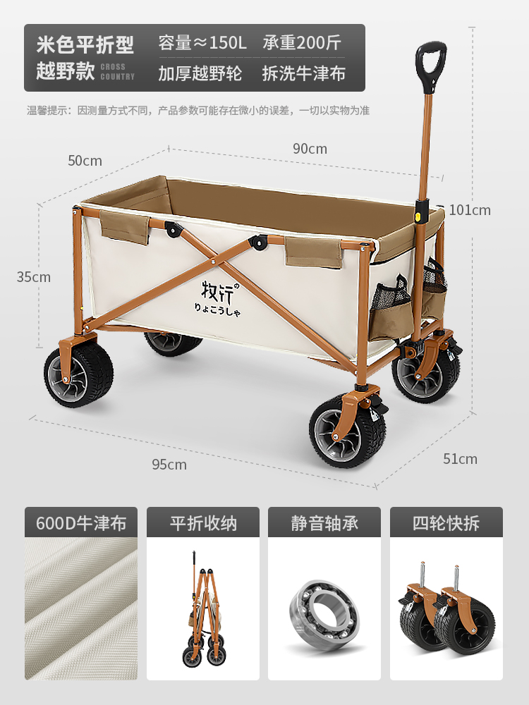 • <<베이지 푸쉬업 모델 + 더블 브레이크 + 베어링 범용 오프로드 휠 캠핑 + 150L 용량>>