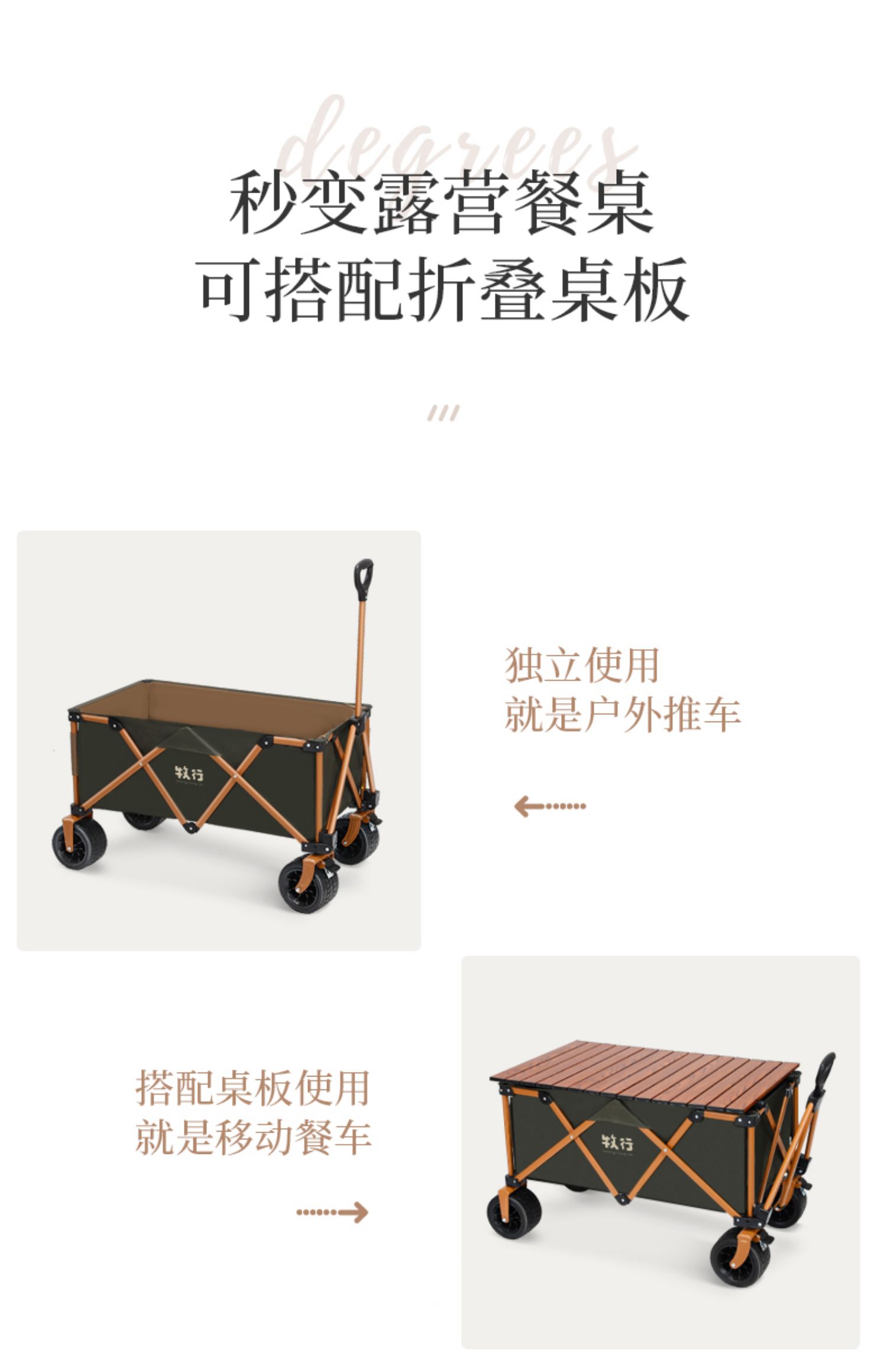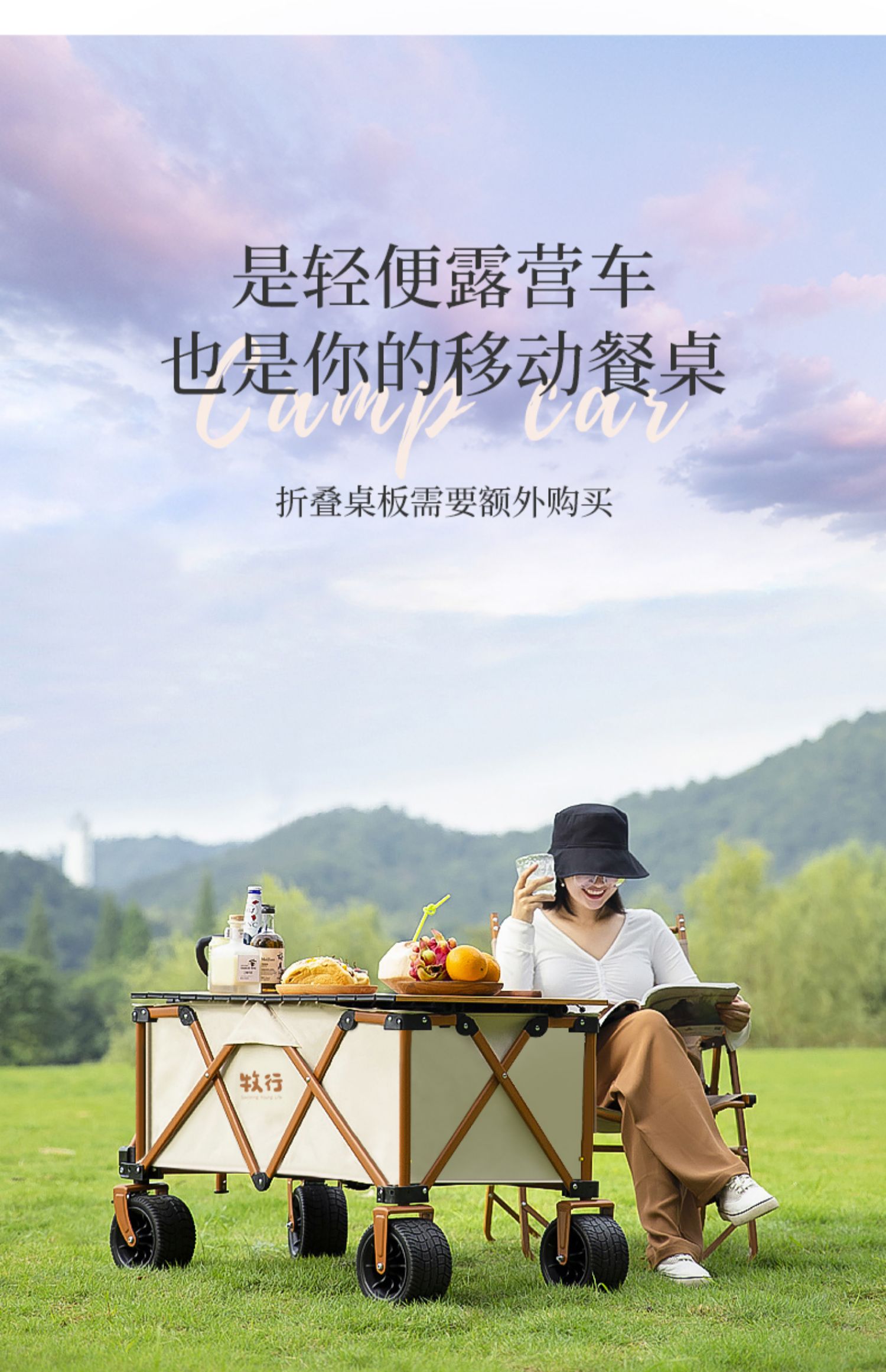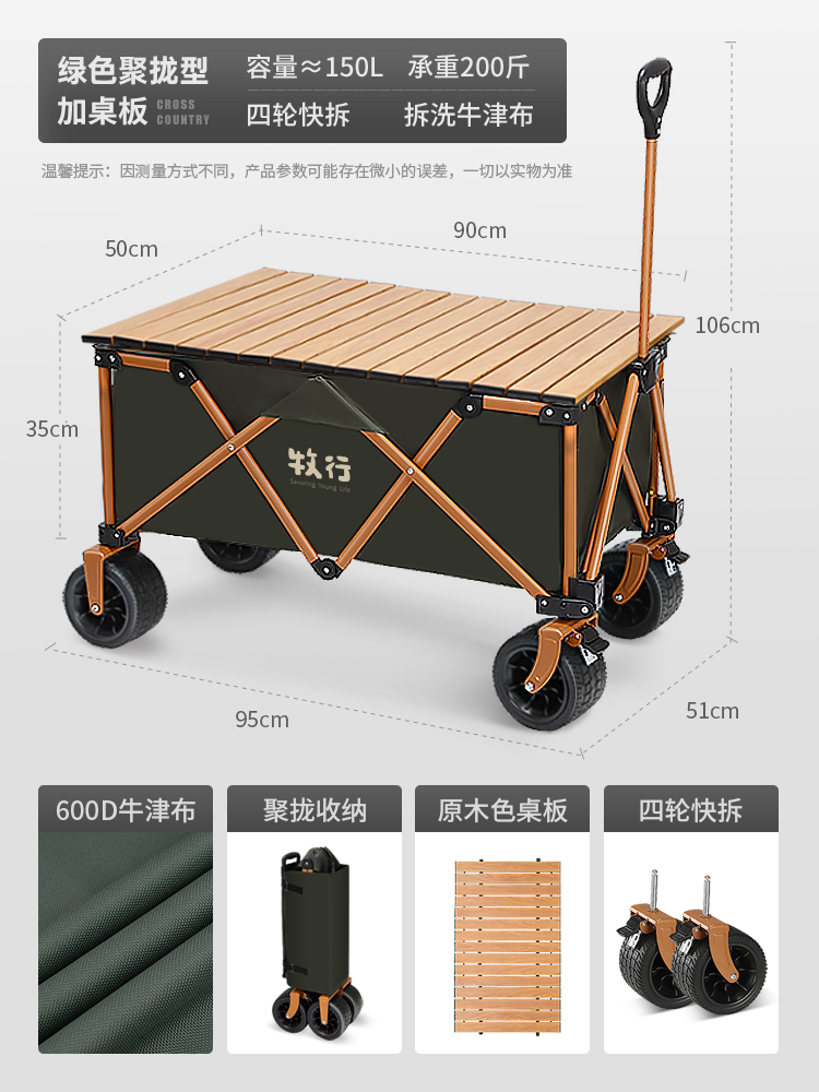 • <<그린 푸쉬업 모델 + 베어링 범용 오프로드 휠 + 확대된 경량 알루미늄 로그 컬러 테이블(초 단위로 식탁으로 전환) + 150L 용량>>