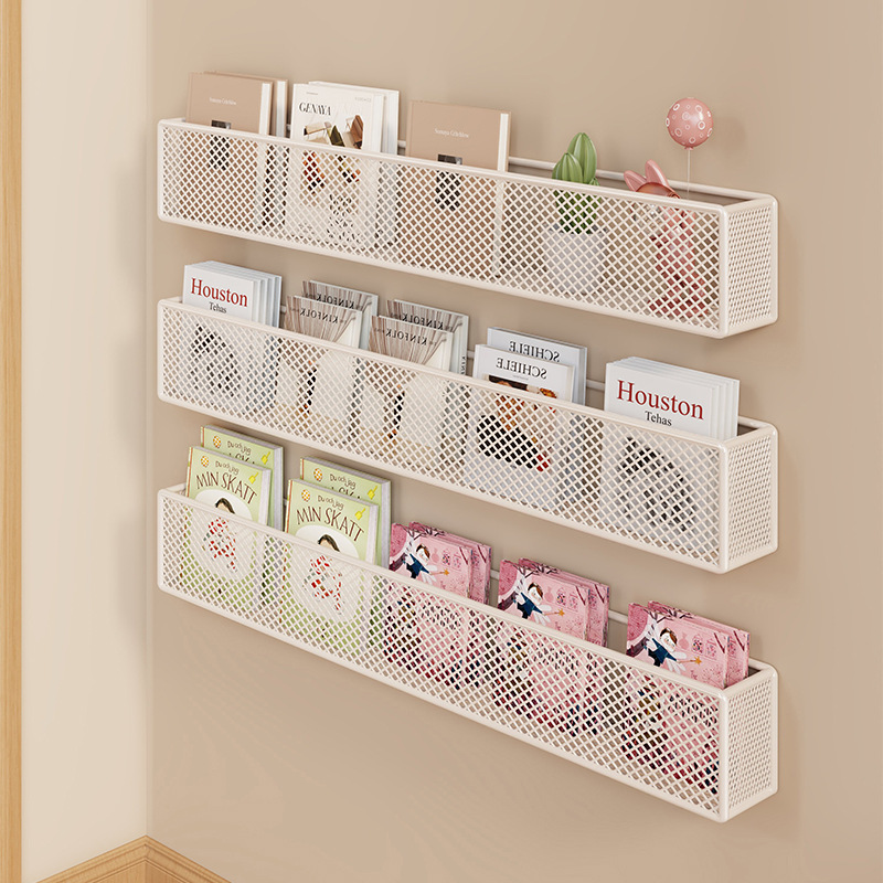 문 책장 어린이 그림책 보관 랙 벽 교수형 간단한 디스플레이 랙 벽 펀치 무료 책 보관 랙