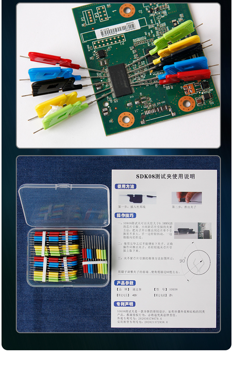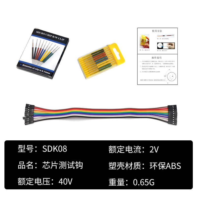 칩 유니버설 ic 테스트 더블 후크 클립 바이오스 굽기 솔더가없는 분해 SDK08 논리 분석기 클립 듀폰 라인