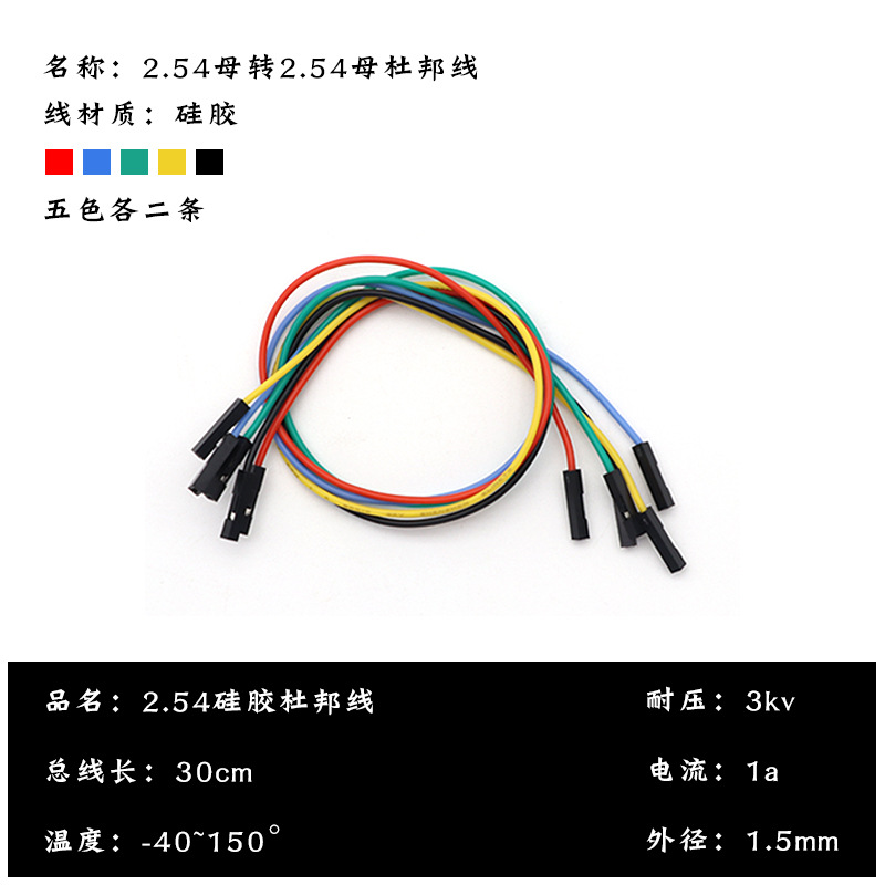 • "빨간색, 검은색, 노란색, 녹색 및 파란색 ""남성에서 여성으로"" 각 2개, 2.54 실리콘 듀폰 와이어"