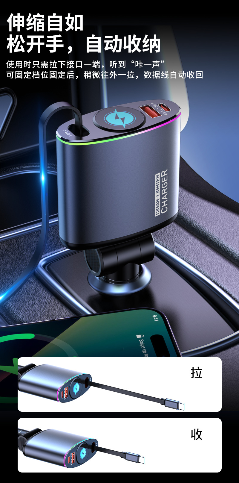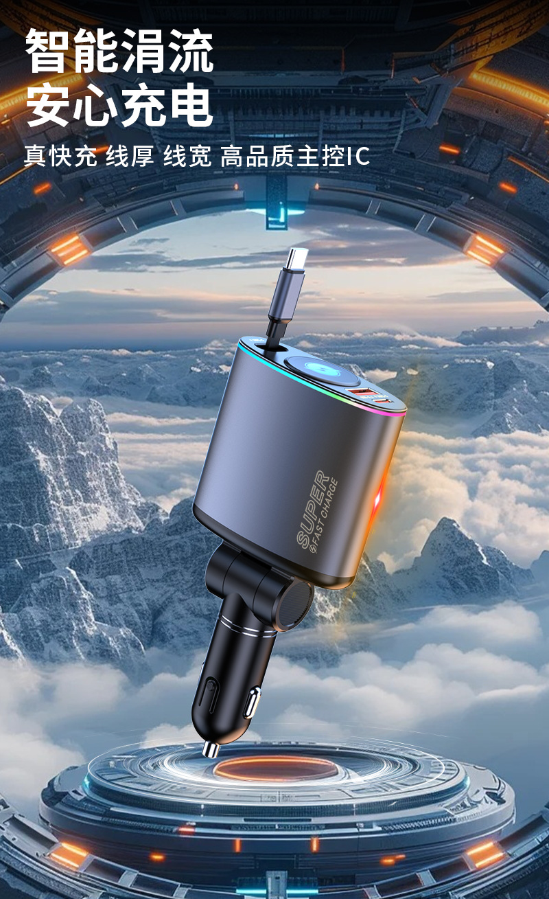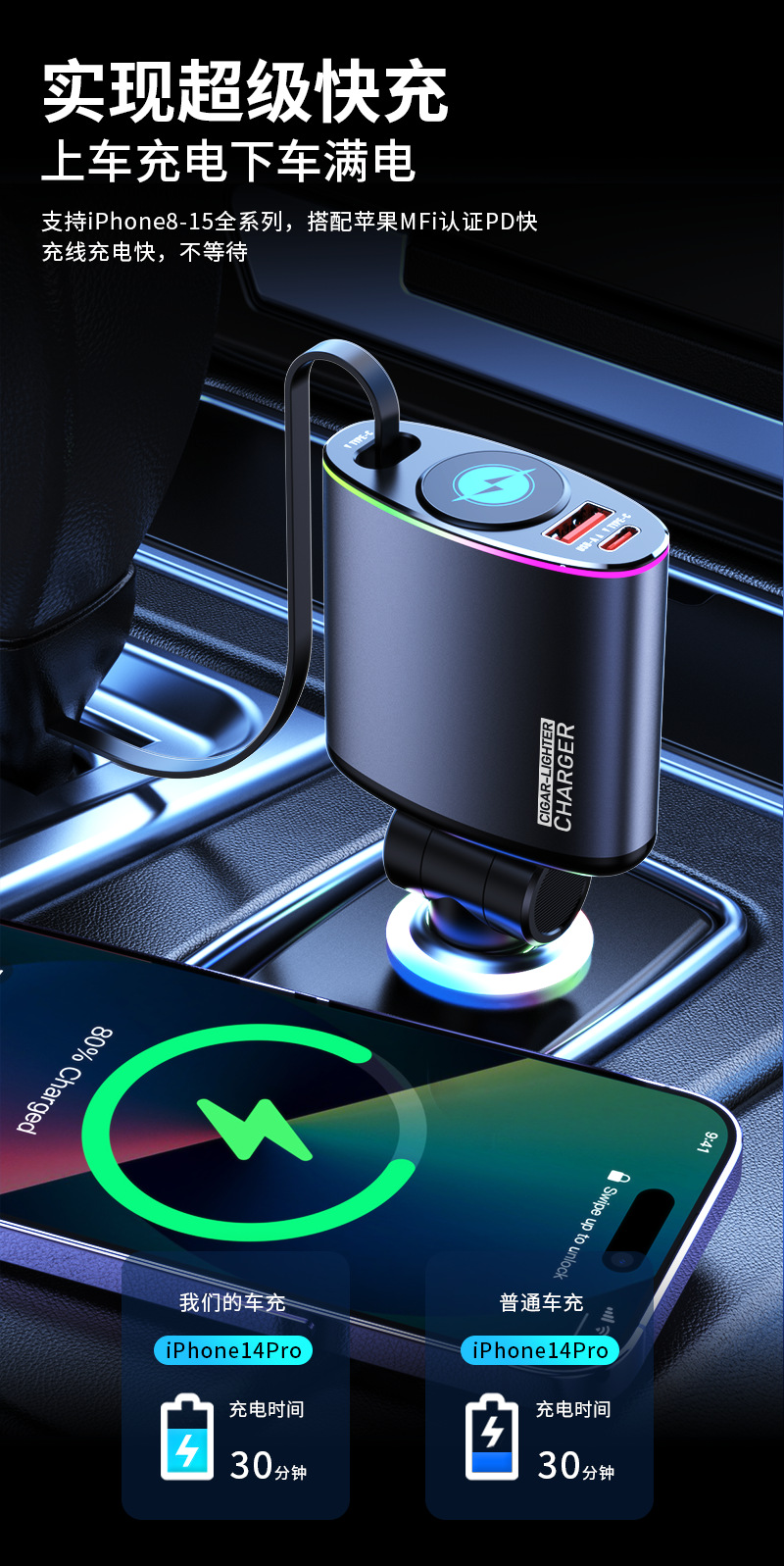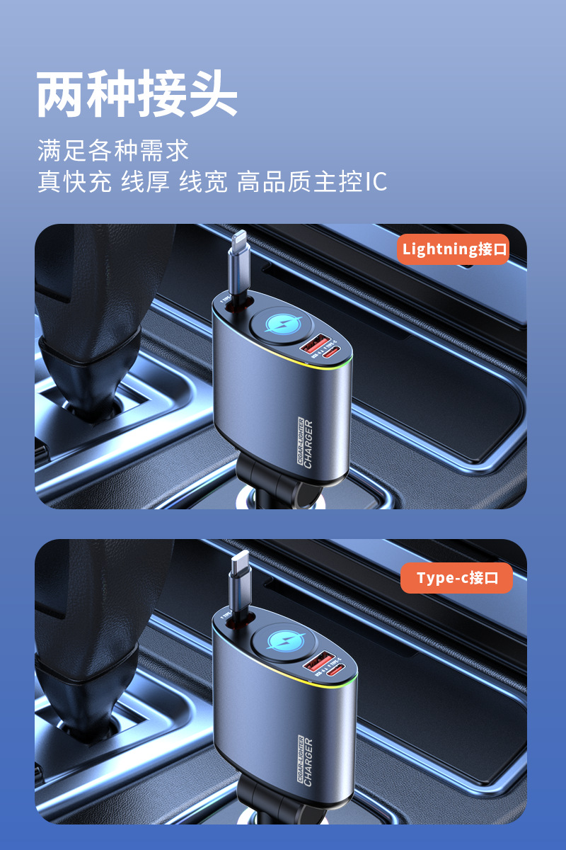 아마존 폭발 슈퍼 빠른 충전 자동차 휴대 전화 충전기 자동차 변환 플러그 듀얼 개폐식 와이어 충전기