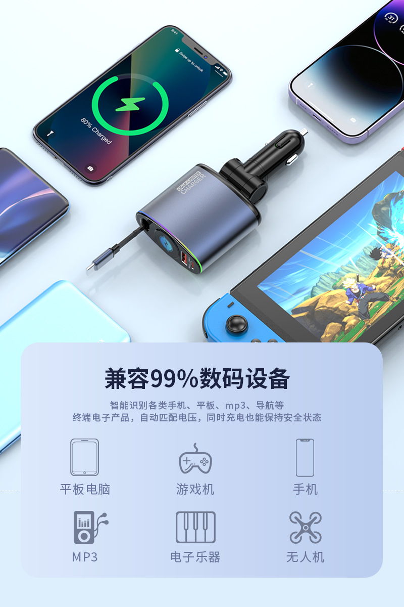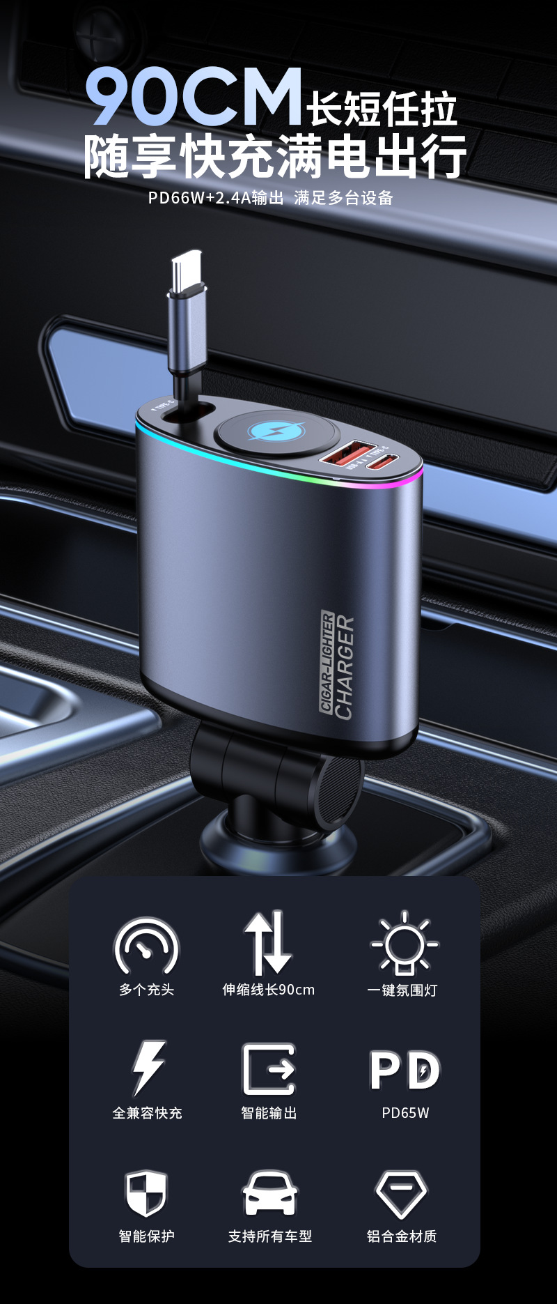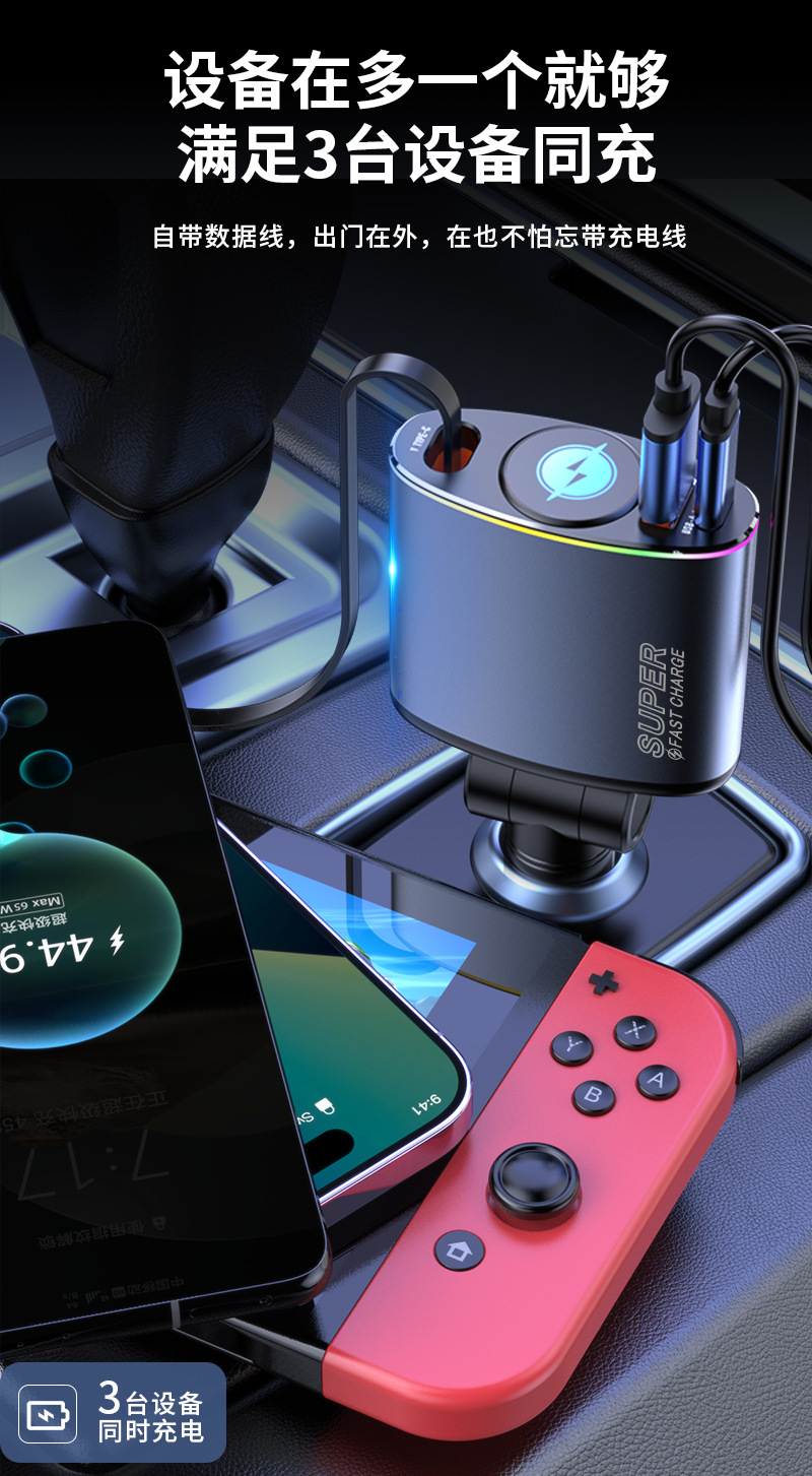 아마존 폭발 슈퍼 빠른 충전 자동차 휴대 전화 충전기 자동차 변환 플러그 듀얼 개폐식 와이어 충전기
