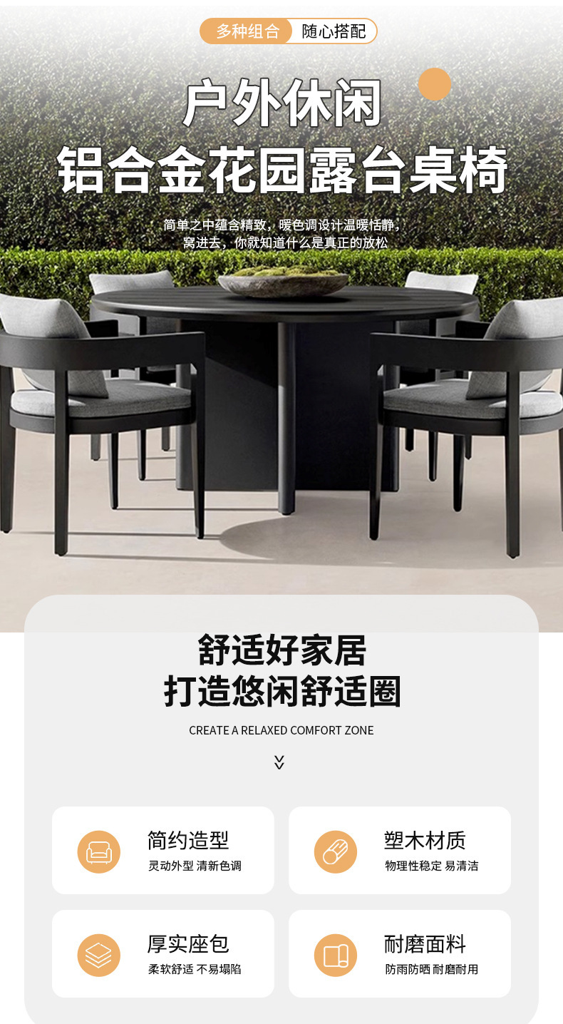 북유럽 맞춤형 야외 안뜰 테이블 및 의자 레저 야외 가구 안티 샤워 야외 태양 알루미늄 합금 발코니 식탁 및 의자스토어 가기