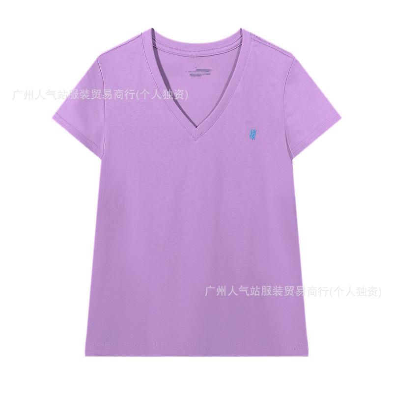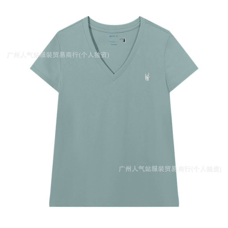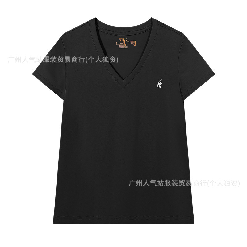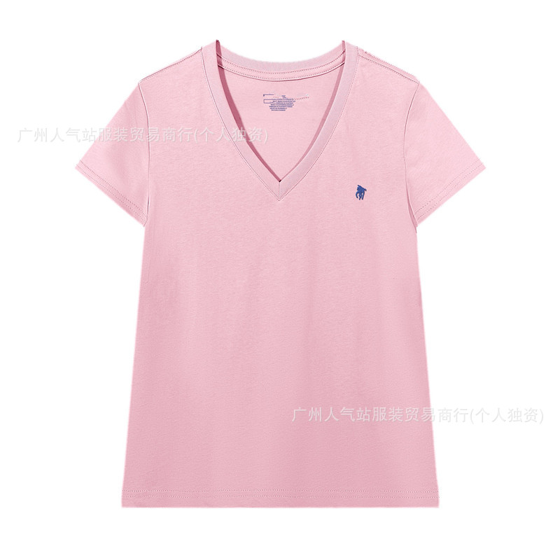 조랑말 자수 어깨 유행 V-Neck 반팔 티셔츠 여성의 여름 뜨거운 소녀의 단단한 허리 슬림스토어 가기