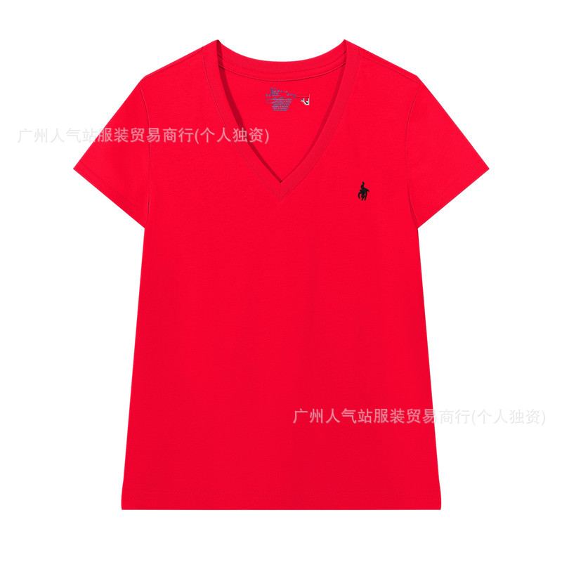 조랑말 자수 어깨 유행 V-Neck 반팔 티셔츠 여성의 여름 뜨거운 소녀의 단단한 허리 슬림