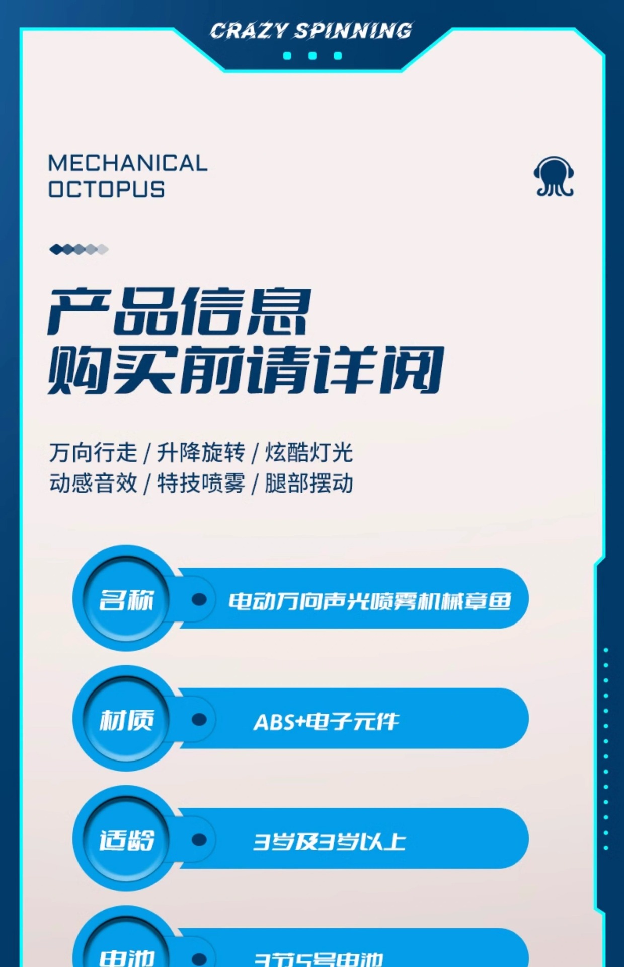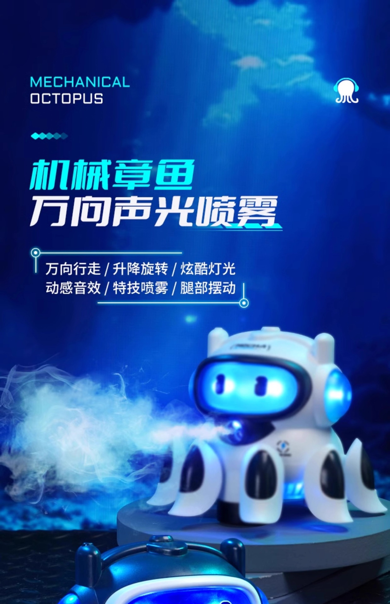 국경 간 전기 보편적 인 문어 빛 특수 효과 스프레이 시뮬레이션 파충류 어린이 전기 문어 장난감스토어 가기