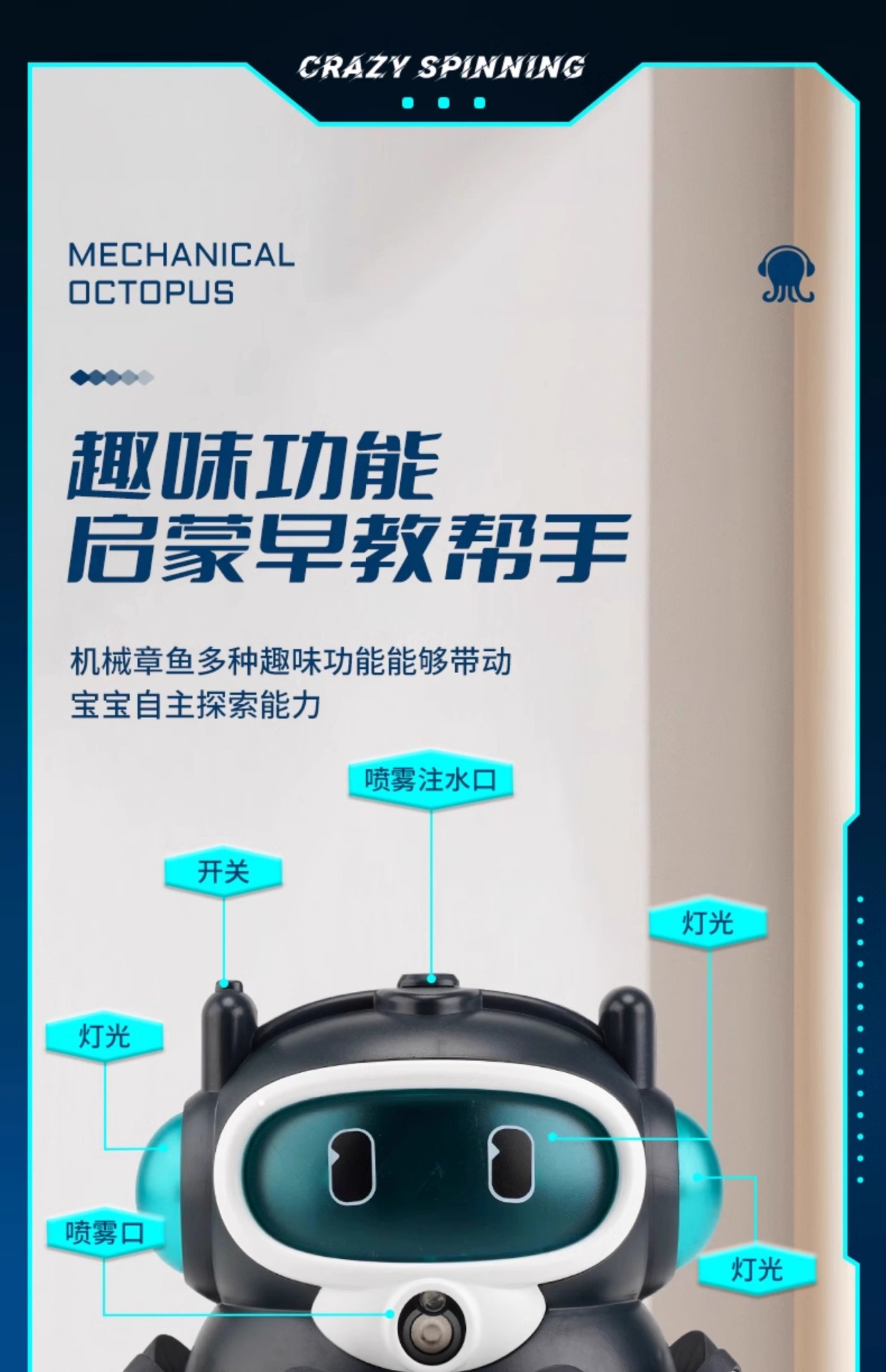 국경 간 전기 보편적 인 문어 빛 특수 효과 스프레이 시뮬레이션 파충류 어린이 전기 문어 장난감