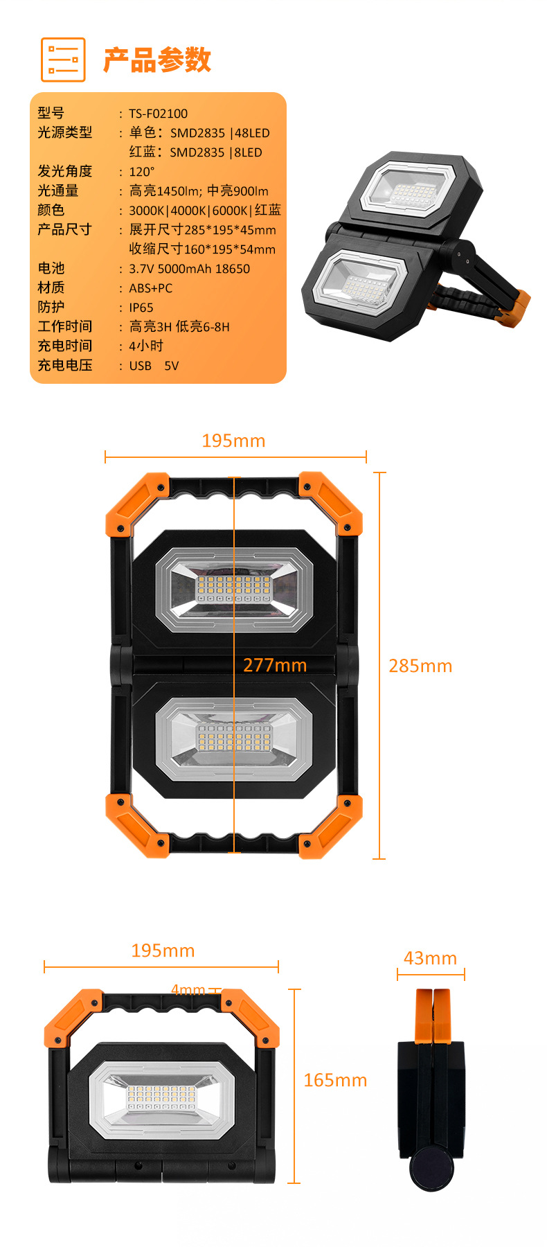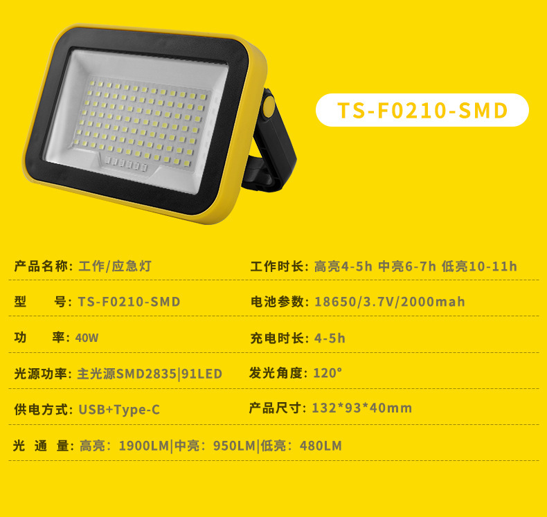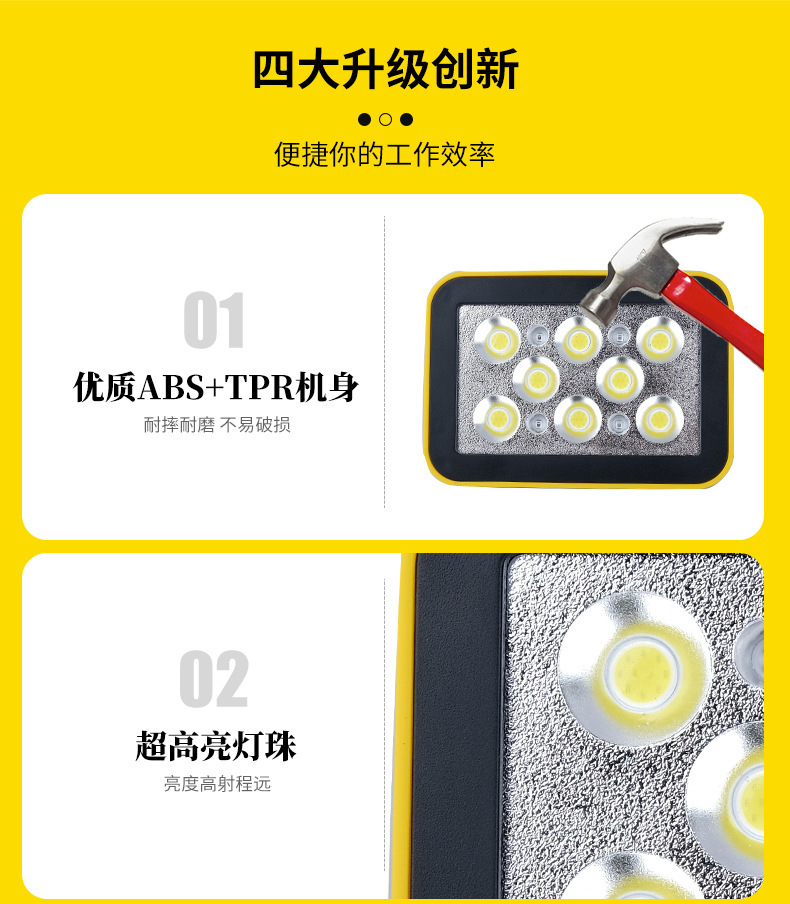 국경 간 작업 조명 충전식 LED 비상 조명 다기능 조명 COB 자기 작업 조명 야외 조명